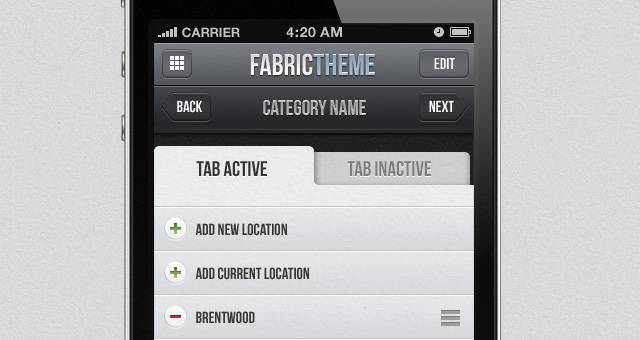 我们的面料iPhone应用程序UI套件是为了使您的iPhone应用程序UI设计感觉现代和干净,轻松的眼睛定制iPhone UI元素。这种工业风格的psd iPhone UI设置是一个完全分层的iPhone应用程序psd模板,具有4个屏幕,标准和视网膜显示分辨率。