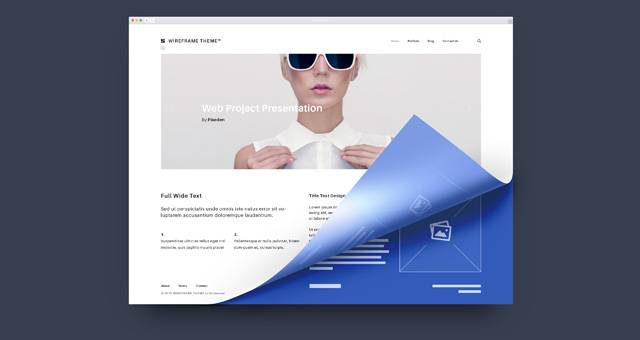 这是一个原始的Web项目介绍psd屏幕与双层风格。 展示您的网页制作过程与两个角剥离样式,蓝图和线框。
