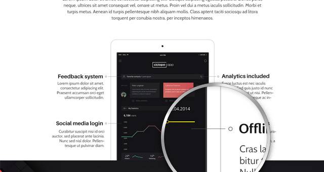 这是我们的App登陆页面系列的最后一个版本,其中包含平板电脑和手机样机,以展示您的通用应用程序项目。我们还创建了一个新的3D标题背景,重点是各种桌面对象。