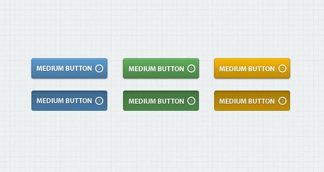一组3个经典网页按钮,3种尺寸和颜色。 psd web按钮随着它们的滚动状态为css实现。只需更改psd文件中的一层填充即可更新按钮的颜色。
