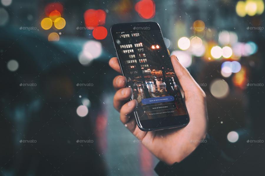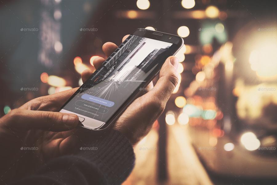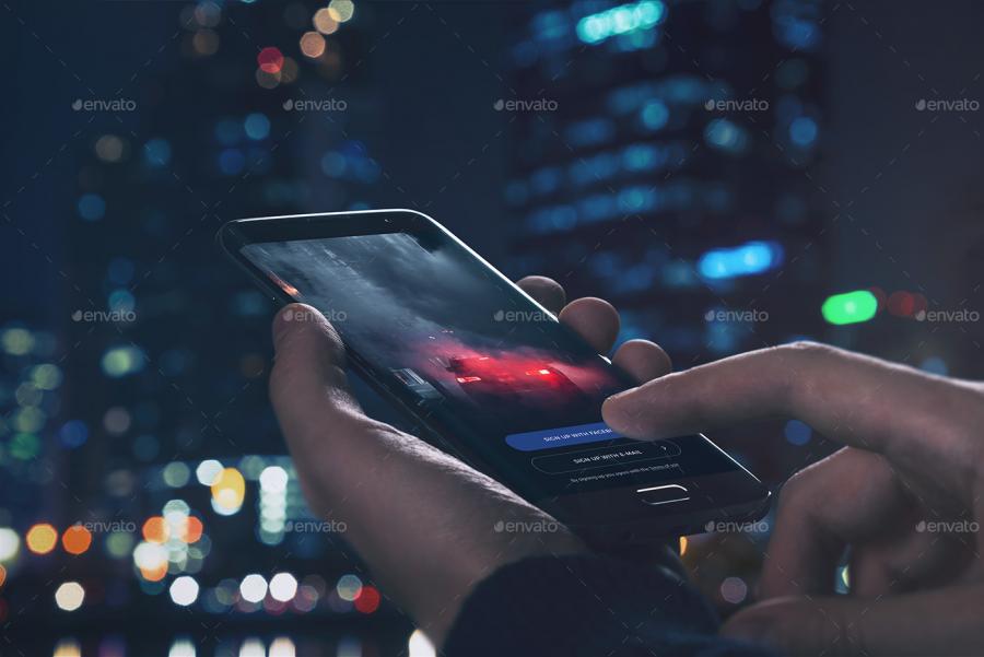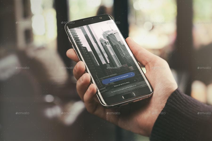6款安卓android app曲屏手机psd样机场景展示模型ui智能贴图模板素材