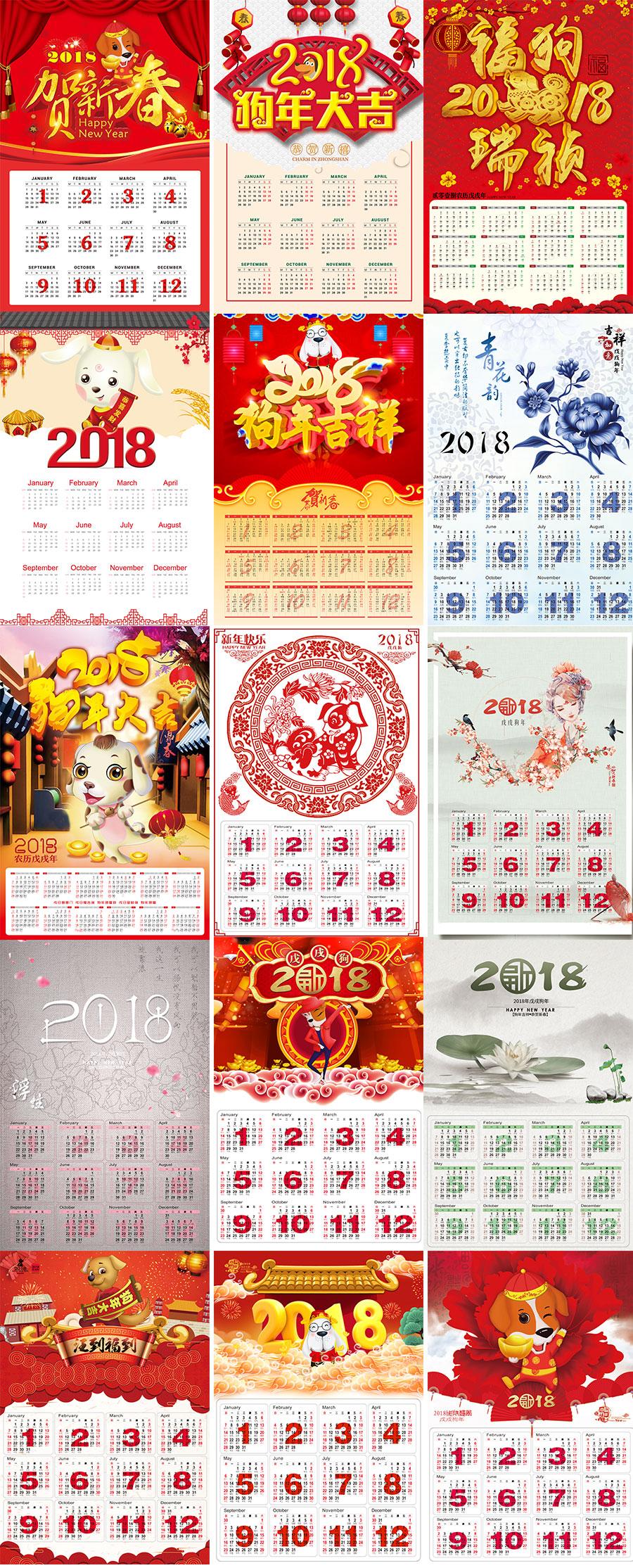 2018年日历台历挂历狗年大吉新春元宵节海报模板PSD设计素材