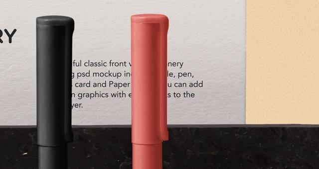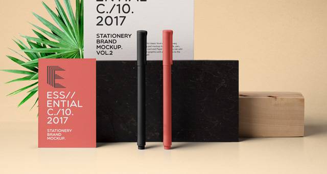 基本psd文具样机项目包括纸品牌和名片。您可以使用智能图层轻松添加自己的图形。