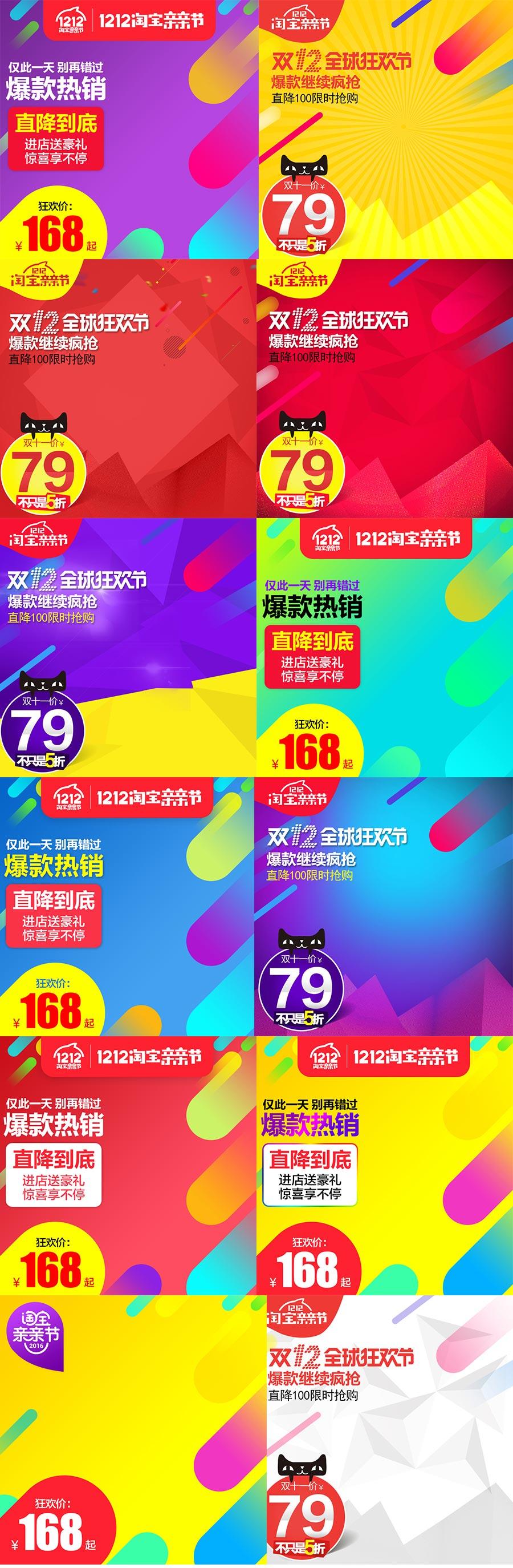 资源大小1.93GB,包含100个banner海报PSD源文件,淘宝官方双12亲亲节LOGO源文件,天猫淘宝双12年终盛典LOGO源文件,首页模板、主图等PSD源文件,多个JPG预览图。希望大家喜欢~享用吧~