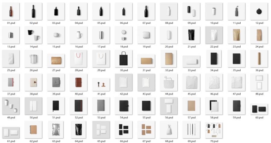 157个平面VI设计提案、包装盒、瓶子、纸袋智能贴图样机模板PSD素材打包下载