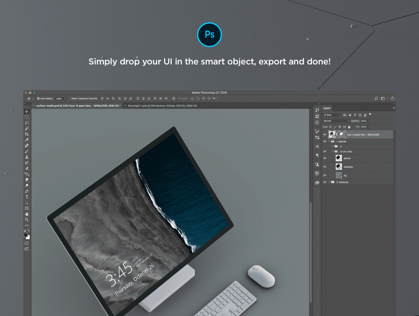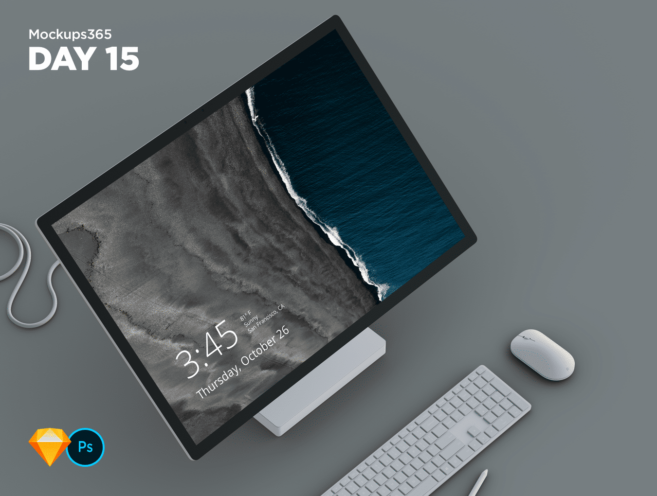 用于Sketch和Photoshop 4K的Microsoft Surface Studio模型,Mockups365:第15天