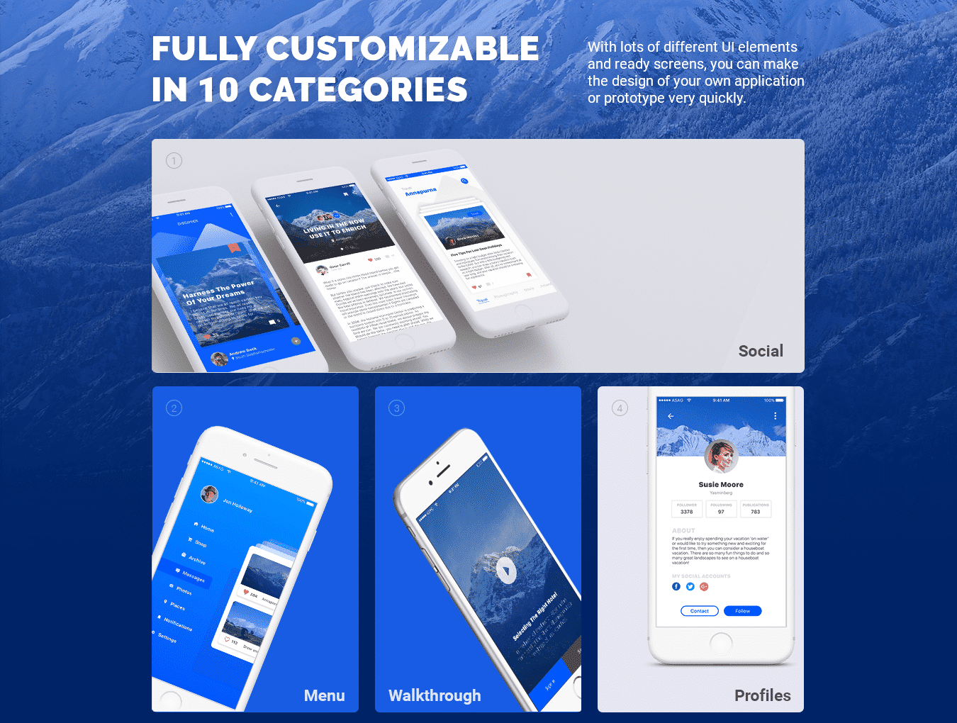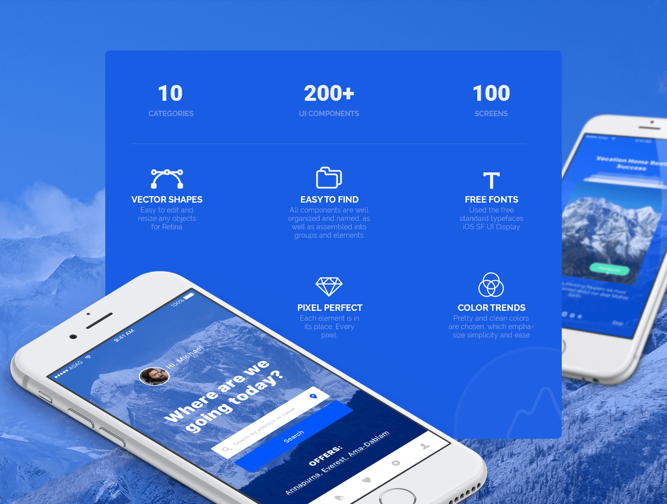 Annapurna是100多种高品质移动UI屏幕模板的高级包。为旅行者提供干净简洁的设计。所有屏幕都可以在Sketch中轻松定制和完全组织。 它包含10个不同类别的100个屏幕和200多个UI组件。所有屏幕和元素都会发生变化,并且易于使用。兼容最新版Sketch。 将来可用于Photoshop。