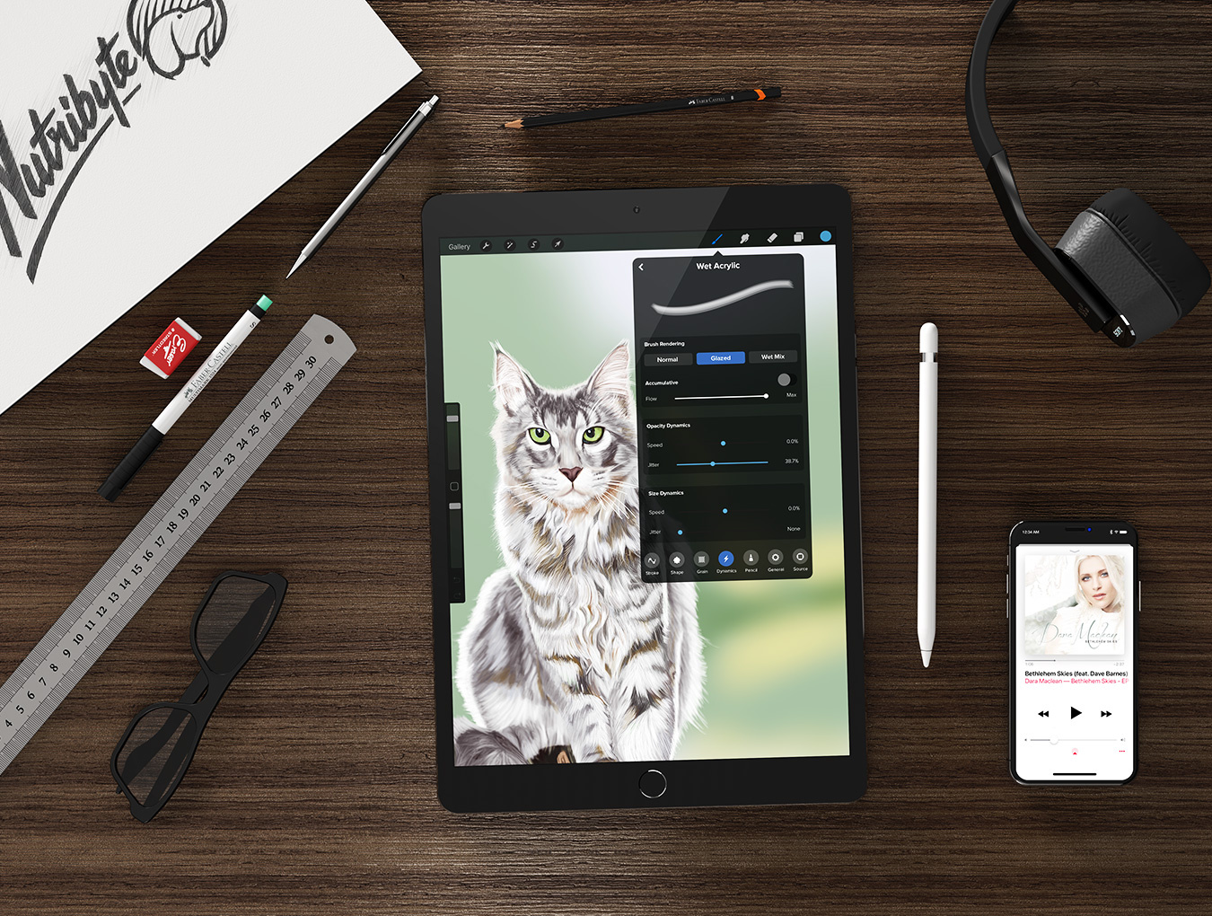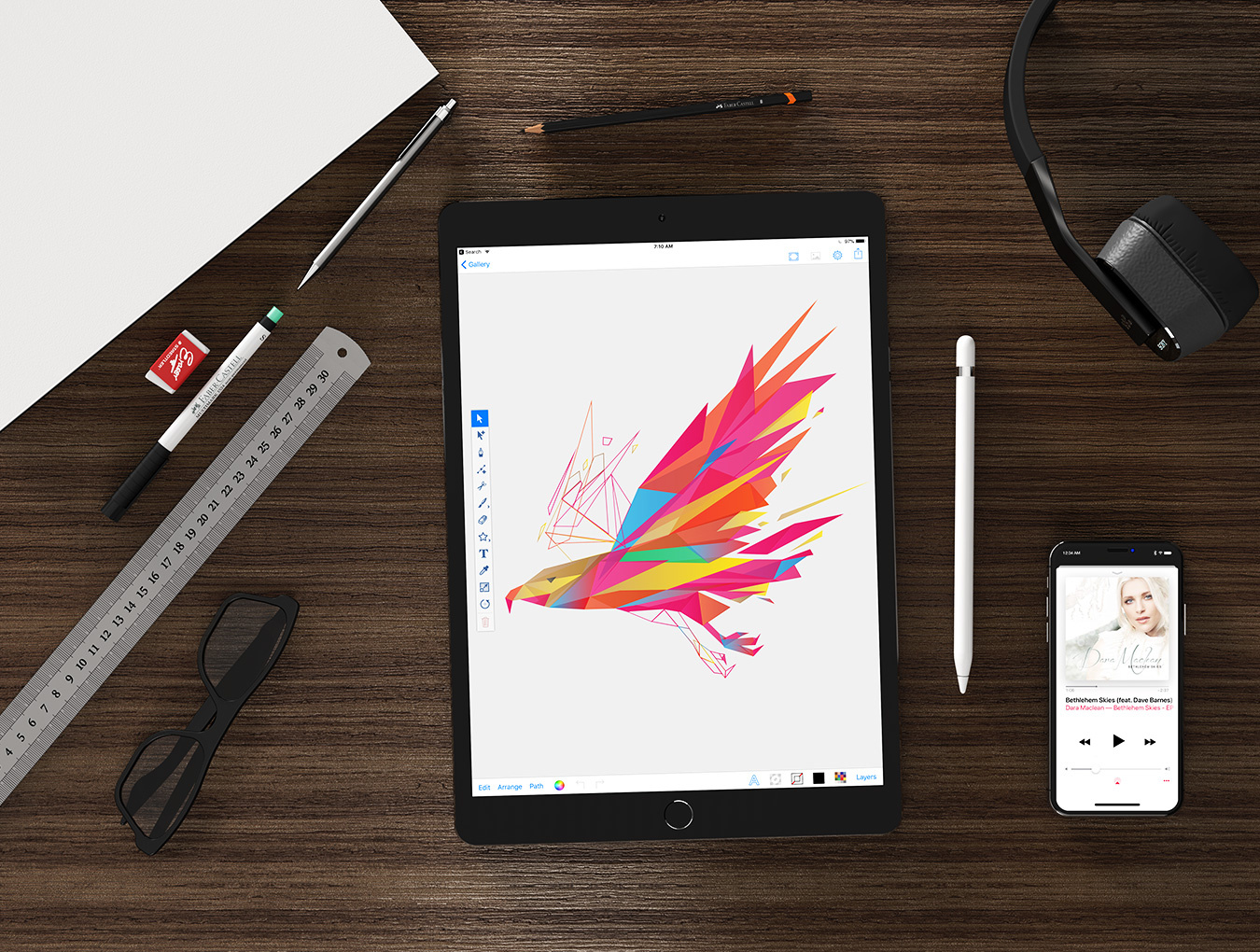 iPad Pro,iPhone X和画板的单个高分辨率photoshop文档。旨在展示从概念到最终执行的创意,无论是应用程序设计,插图还是品牌项目。什么都没有。