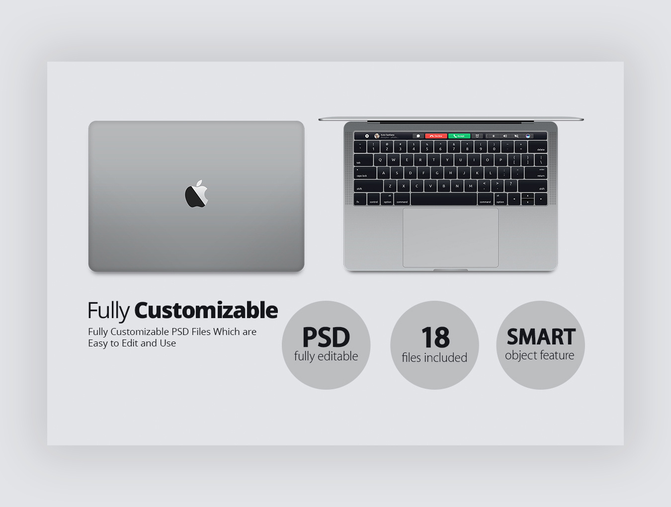 项目 - MacBook Pro样机| Pack包含18个高分辨率3000x2000像素,300dpi .PSD文件和智能对象功能|注 - 仅用于预览目的的图像,不包括在主下载中。