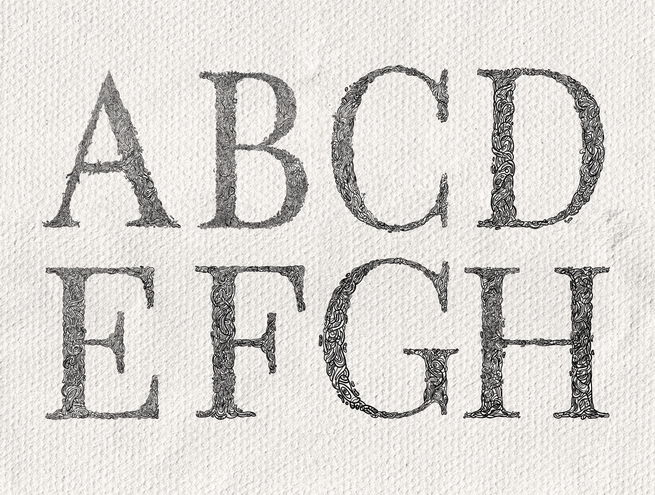 与疯狂的细节的手拉的信件为Photoshop&以图例解释者。,不可思议的森林字法