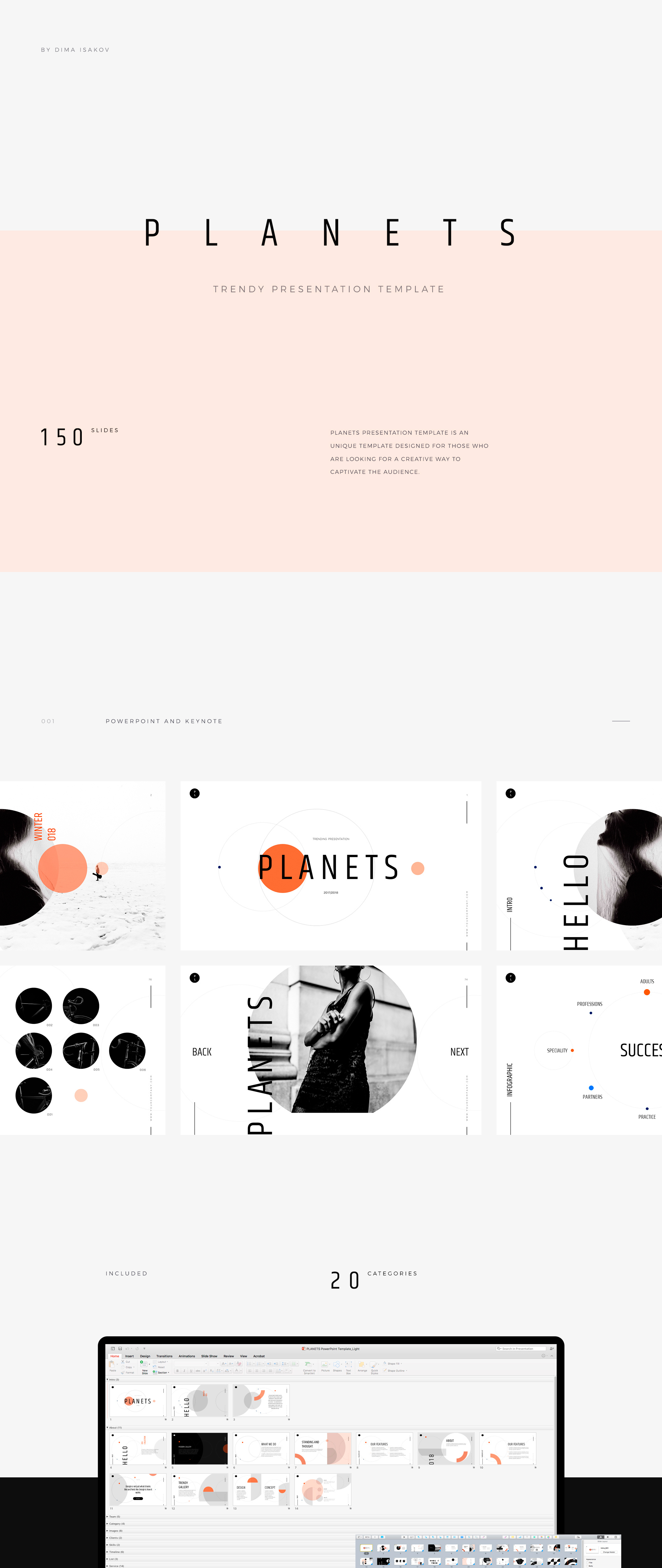 150+趋势PowerPoint和Keynote幻灯片,PLANETS演示模板