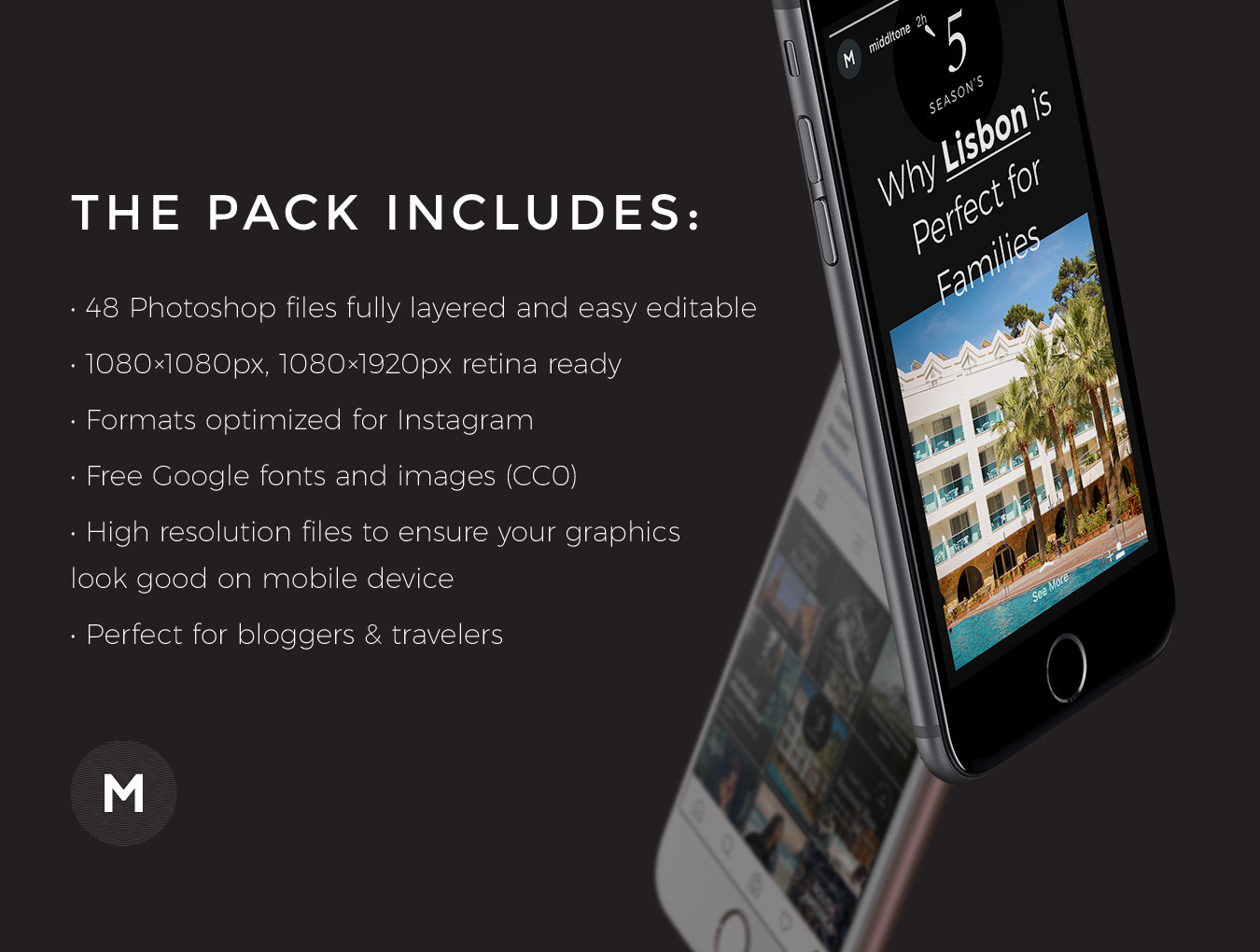 您精彩的帖子和故事模板工具,用于宣传个人资料,作品,照片,活动或博客!帖子和故事模板可以帮助您在Instagram上创建最好的帖子和促销活动。 该软件包包含48个Instagram模板。也适合摄影和服装销售。所有这些PSD模板都是分层和完整的,只需点击几下即可更改从文本到图像的所有内容。