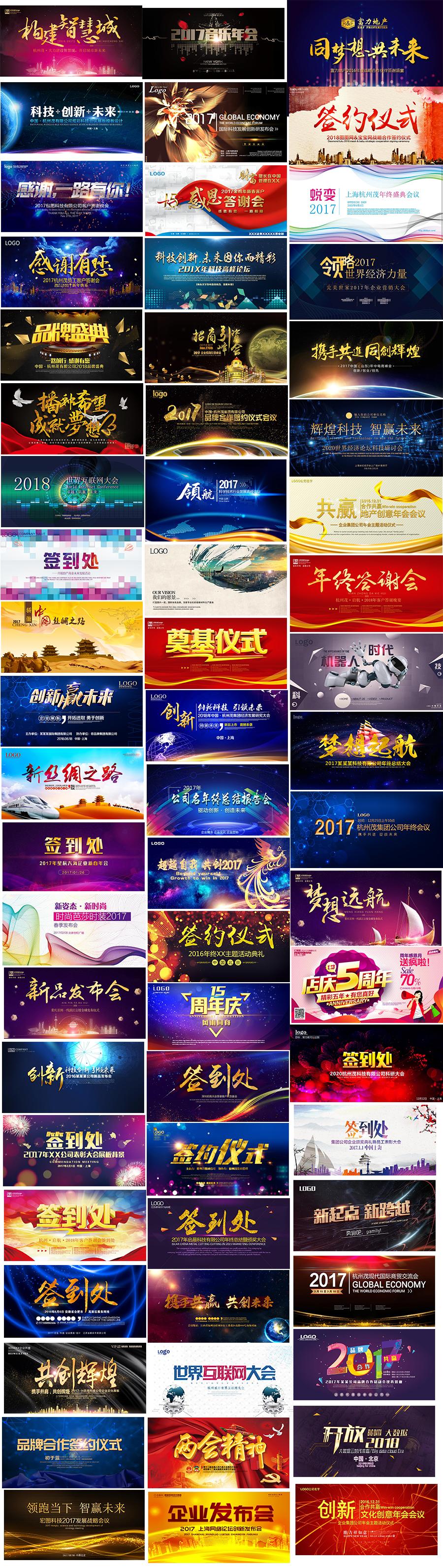 178款年会活动、会议展板等PSD素材源文件打包下载