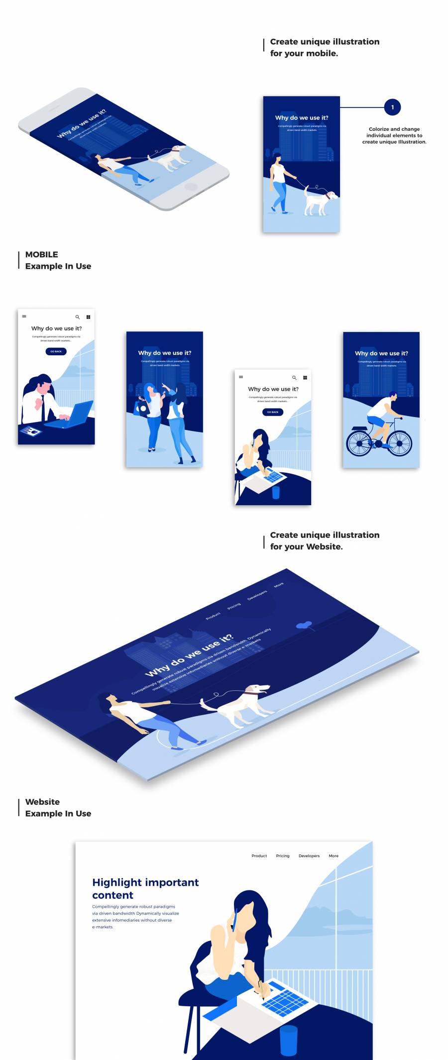 美丽,现代和详细的插图创建使用Adobe Illustrator 5移动应用程序和5网站设计,这是100%矢量为基础。您可以使用此插图套件让您的应用更加有趣。