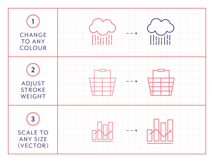 与Illustrator兼容的60个有用的线图标的集合。,60个有用的线图标