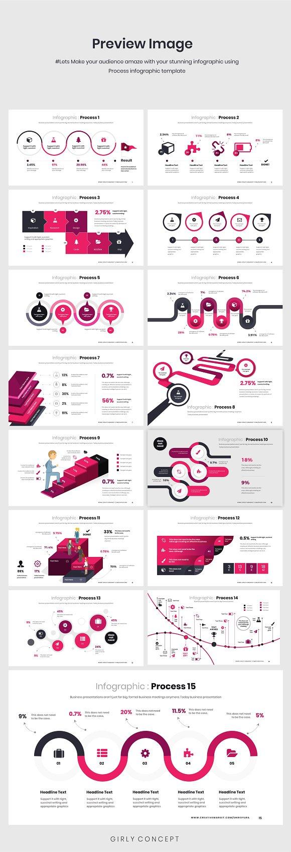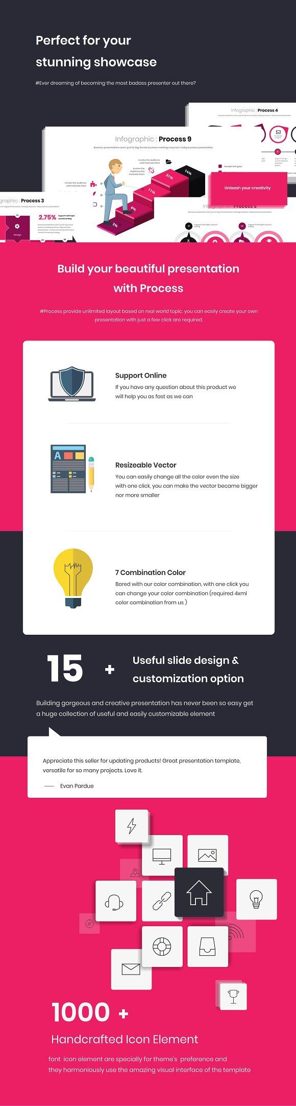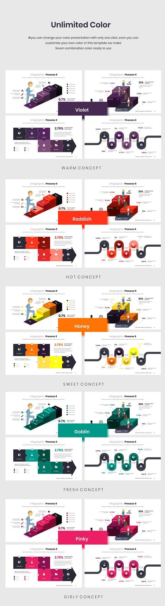 信息图形PPT幻灯片(包含1000+字体图标、HD比例16:9、可调整大小的矢量形状元素,多种配色)