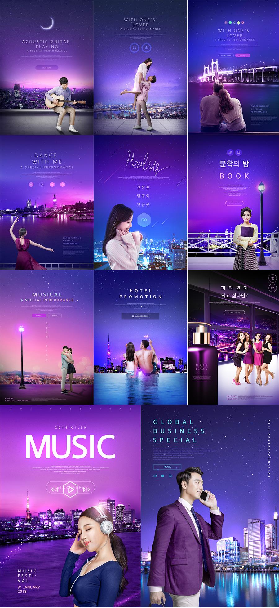 11款紫色唯美天空夜晚情侣地产广告街道星空PSD海报韩国素材