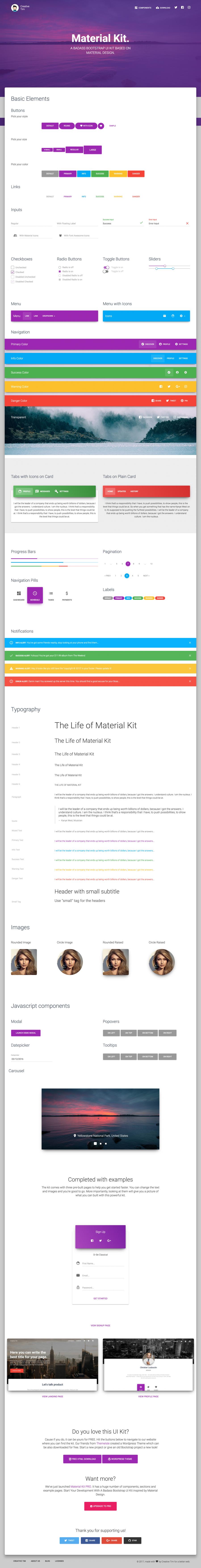 Material Design Kit是一个免费的Bootstrap UI工具包,其设计灵感来源于Google的材料设计和全新设计。 你问了它,所以我们建立了它。非常高兴地向您介绍易于使用和美观的组件的材料概念。 随着Bootstrap元素的重新设置,您将找到三个完全编码的示例页面,以帮助您设计下一个项目。