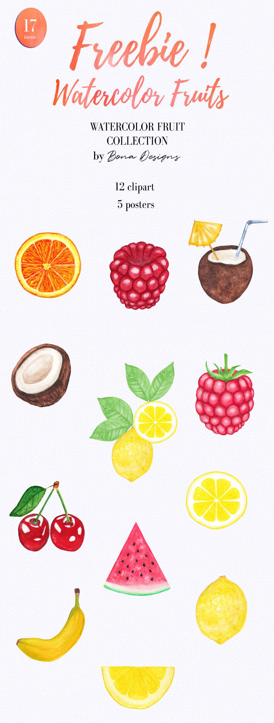 12个免费水彩水果(12 Free Watercolor Fruits)