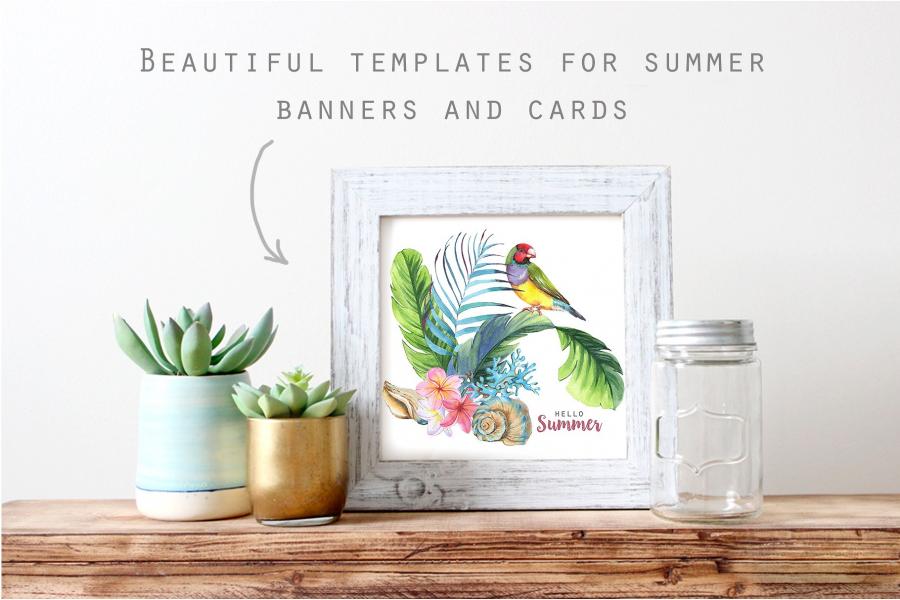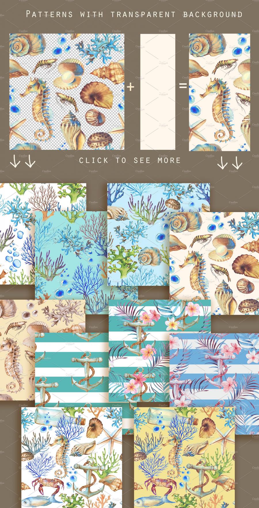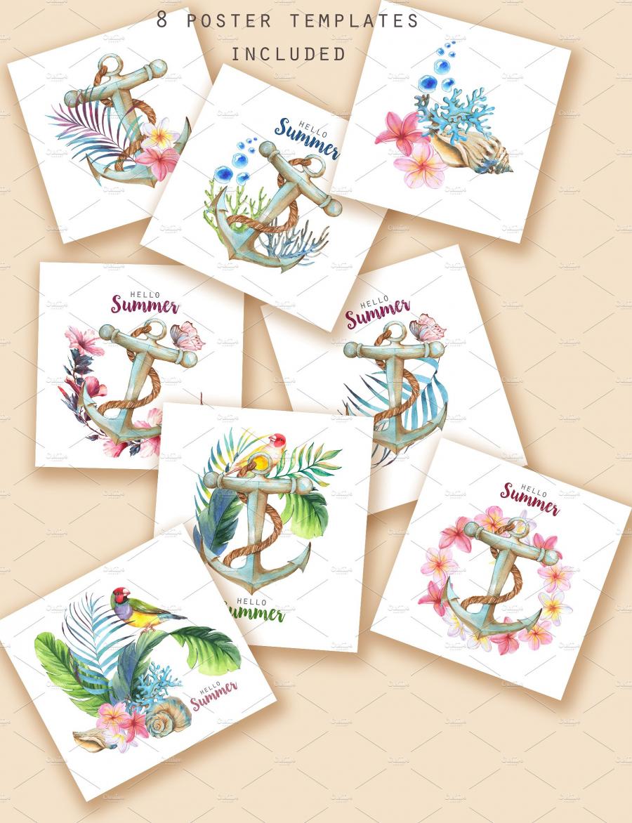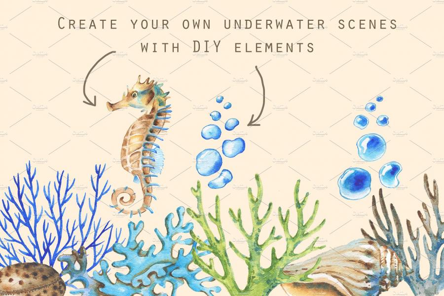 水彩手绘海洋主题元素PSD分层素材