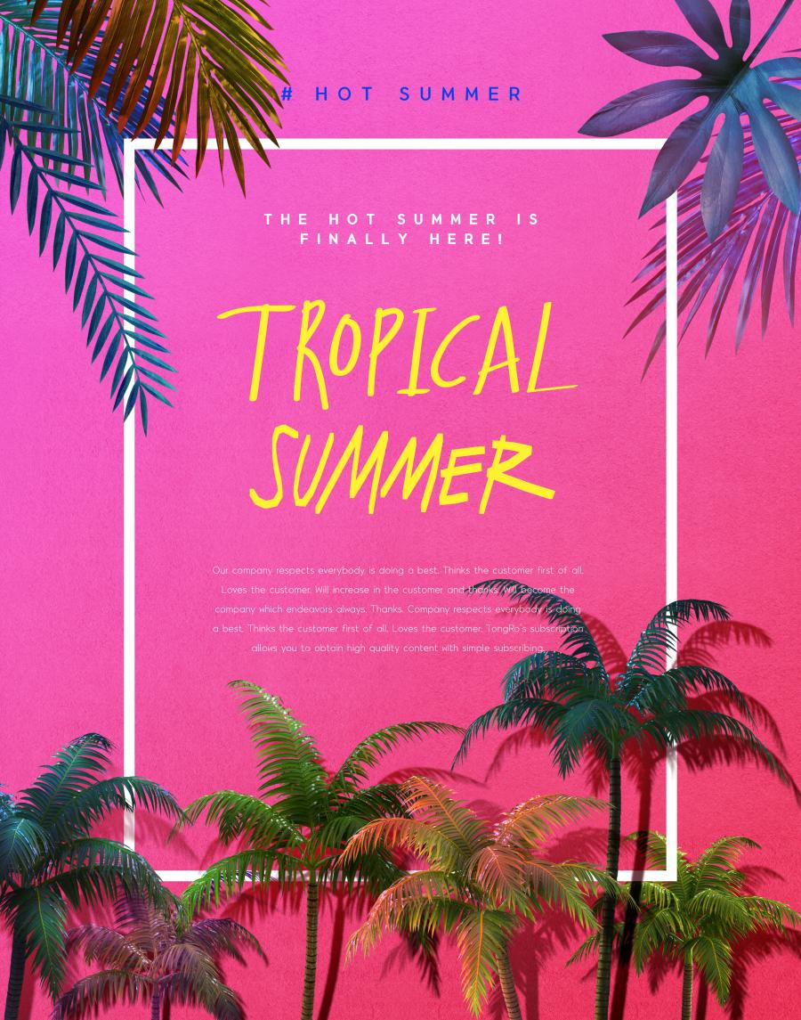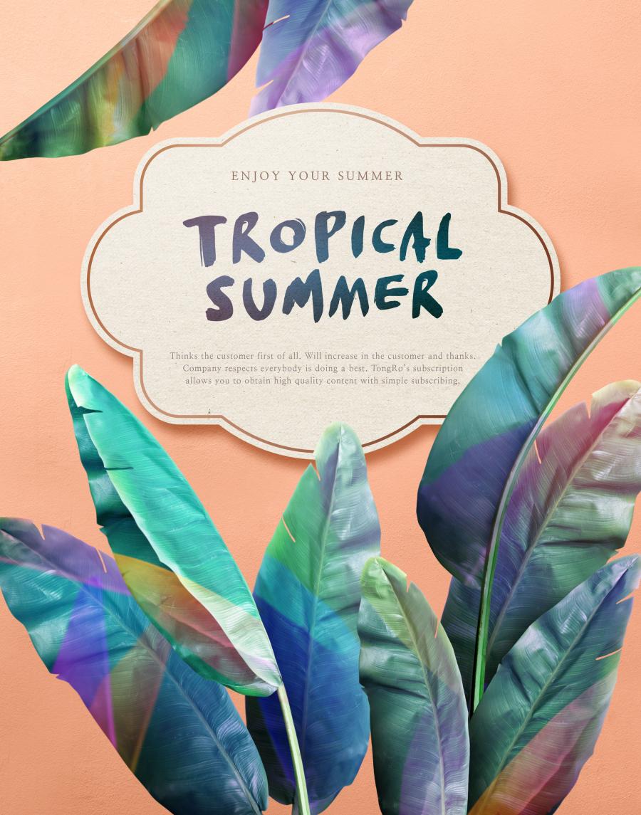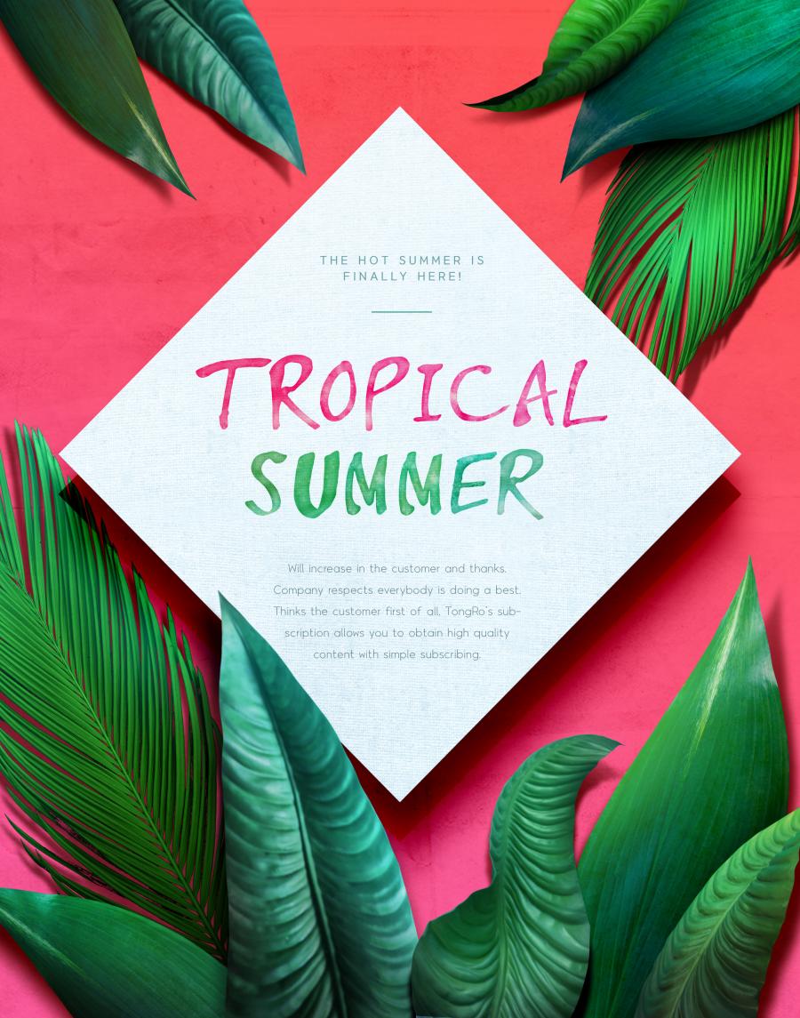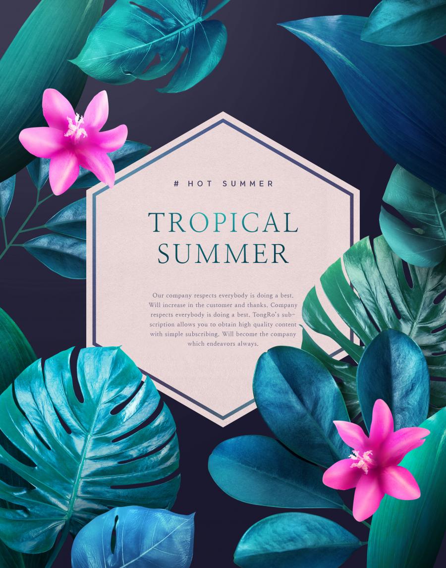14款夏季热带植物花卉夏威夷邀请函海报PSD模板素材