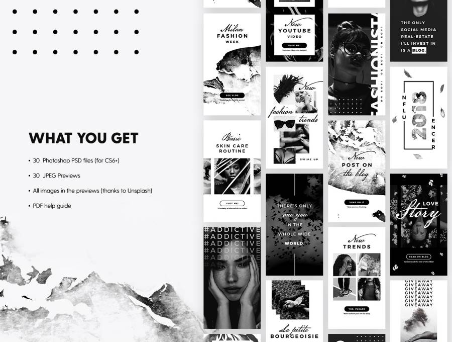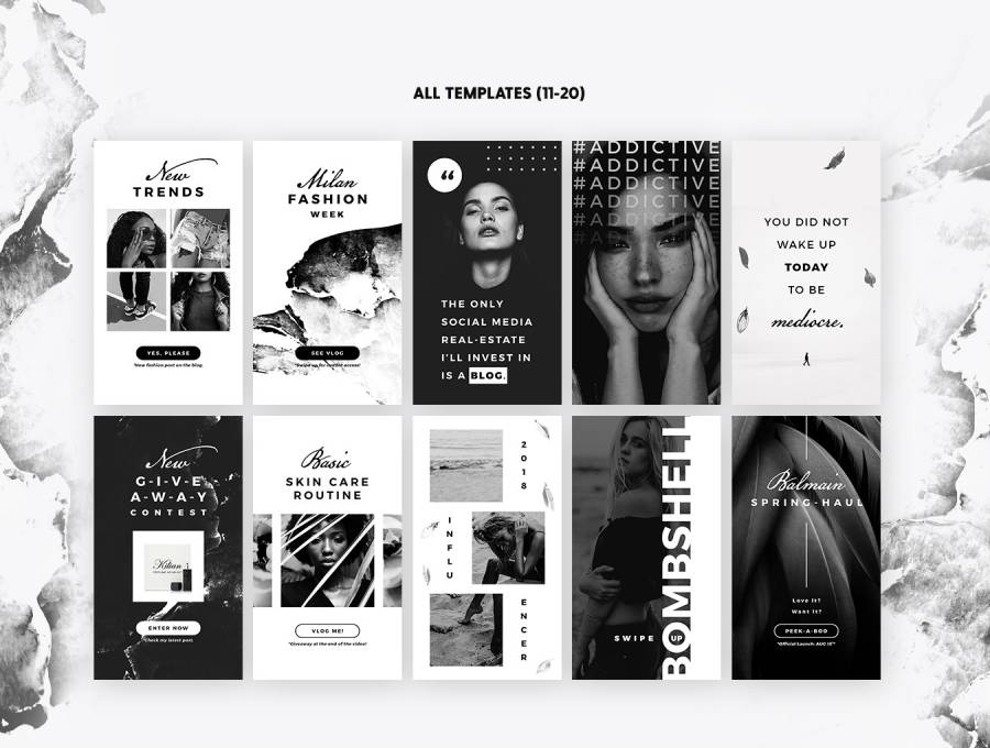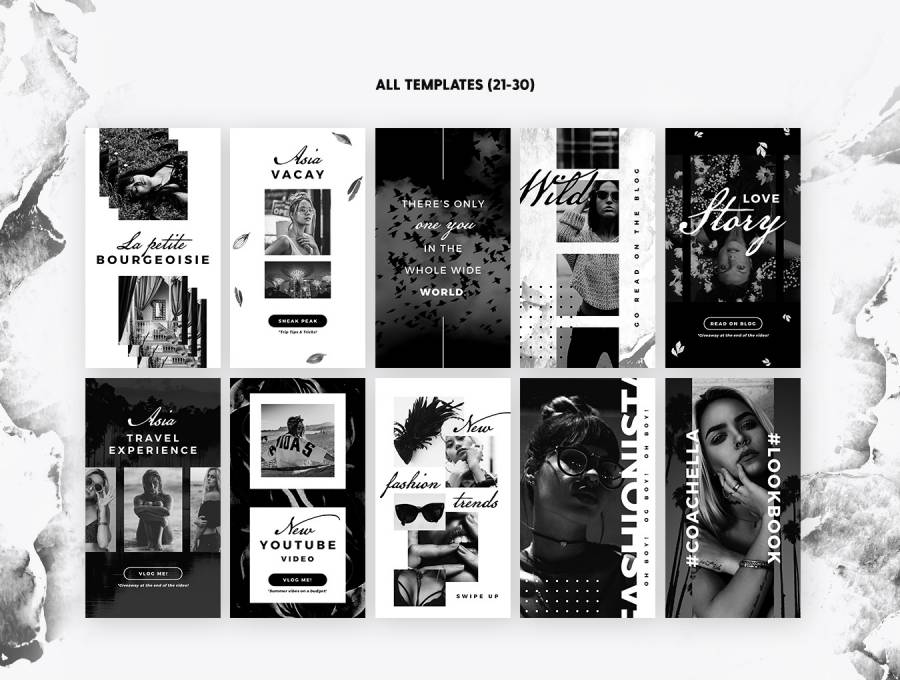 30个Photoshop模板,用于惊人的Instagram故事。,Noir Beauty Insta Stories