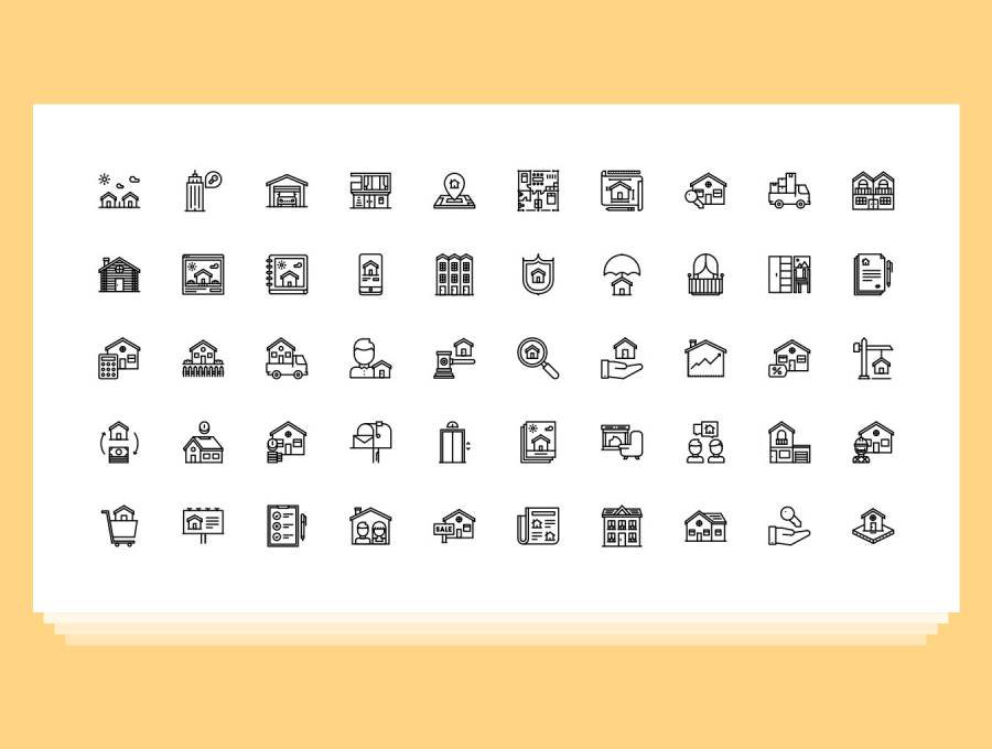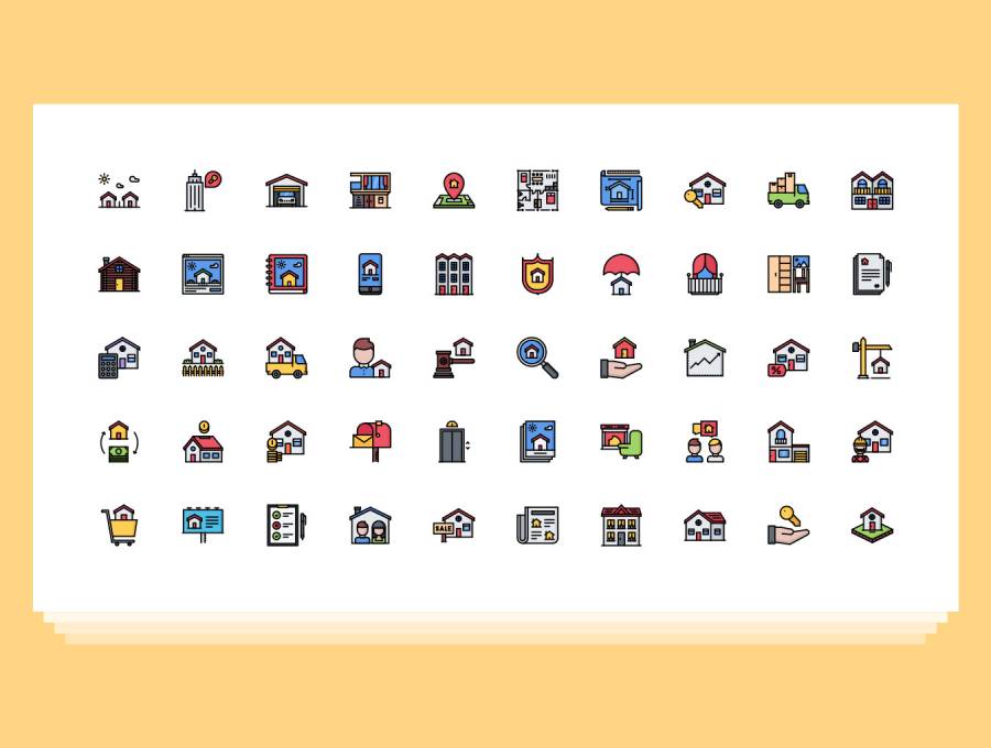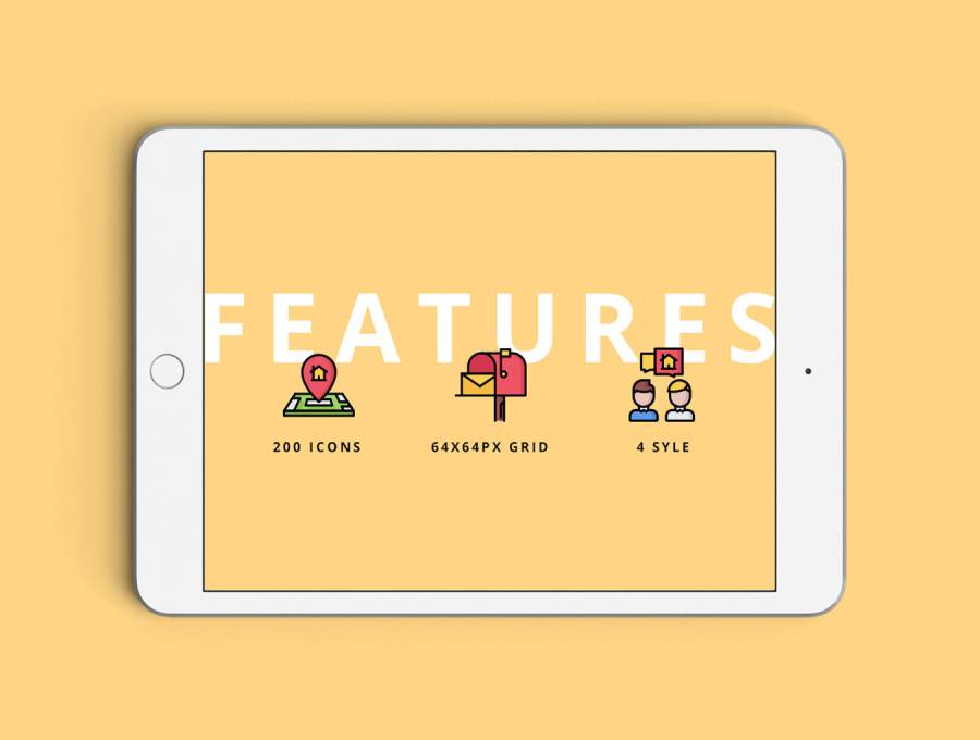 SVG,PNG和EPS格式的4种图标样式的200个房地产图标。,房地产200