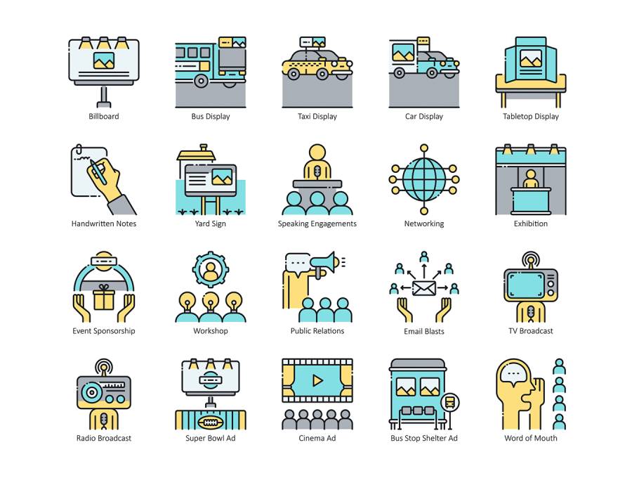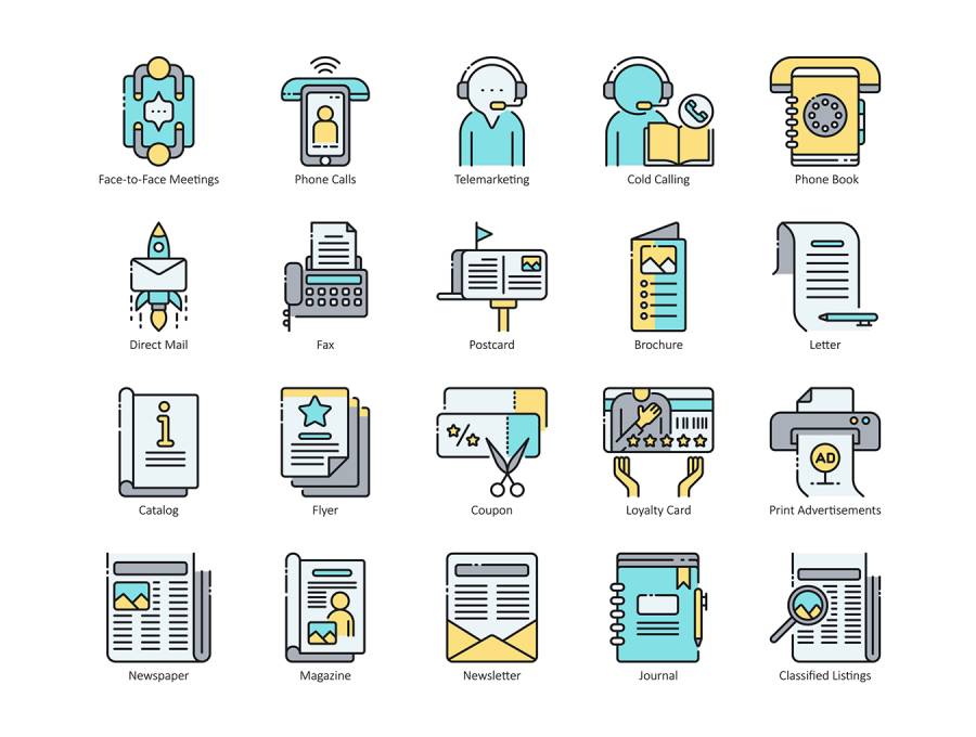 一套56个特殊颜色图标,主题为传统营销,涵盖印刷广告,电话营销和冷呼叫,广告牌广告,电视和广播,品牌吉祥物和销售推广人等主题。我们的图标是100%矢量,因此您可以根据自己的喜好自由更改大小和颜色。提供AI,EPS,PNG,SVG,PSD。点击上面的预览按钮仔细查看!