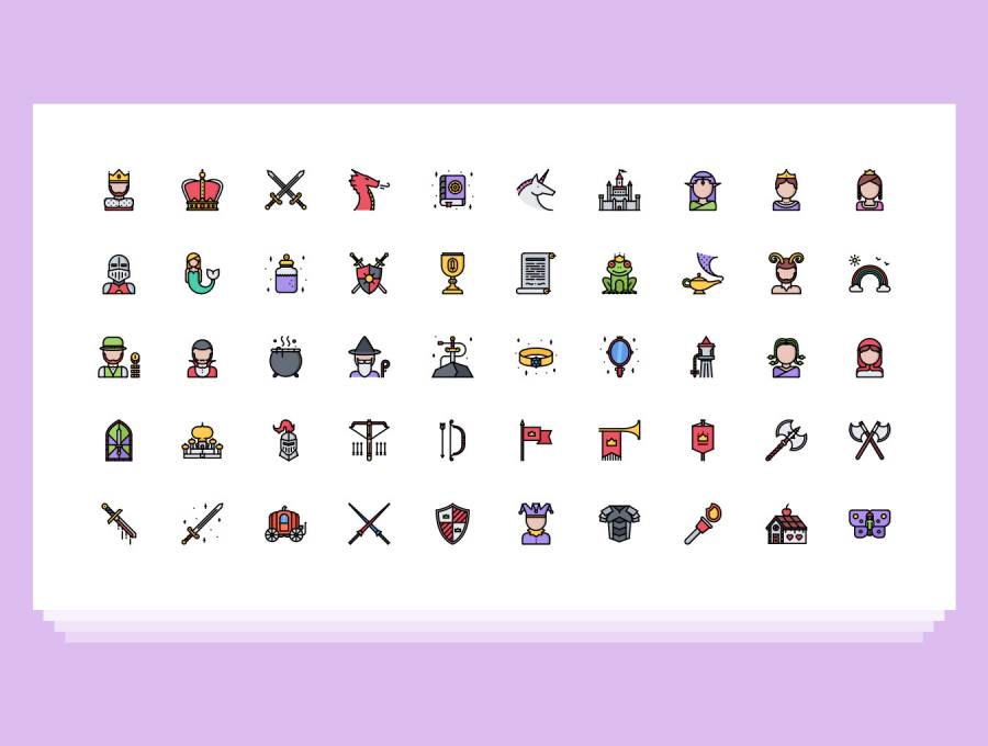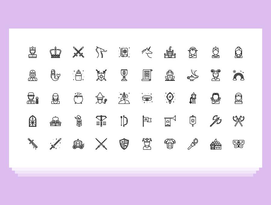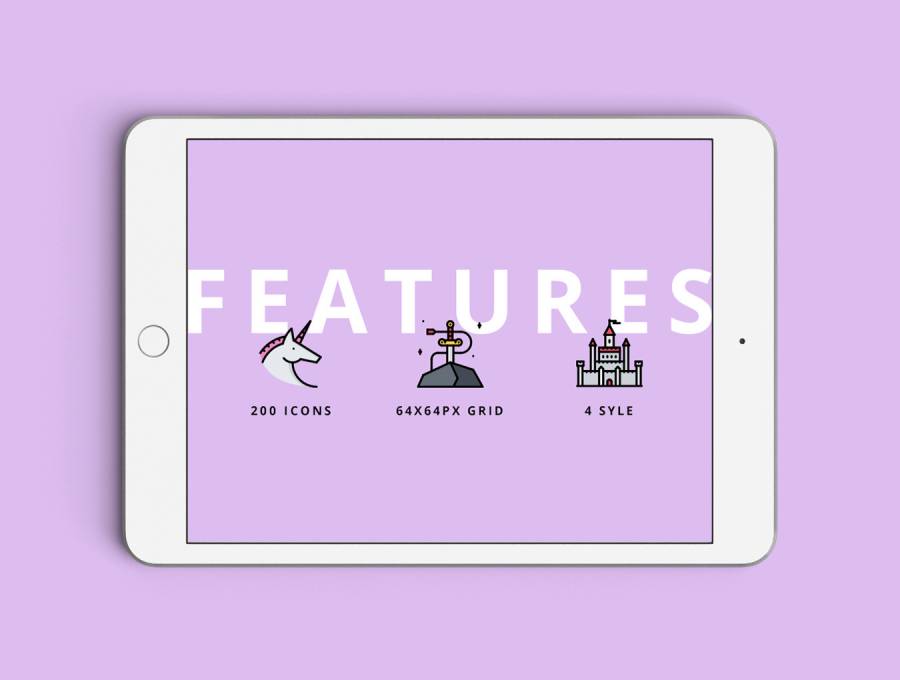 SVG,PNG和EPS格式的4种图标样式的200个童话故事图标。童话故事200