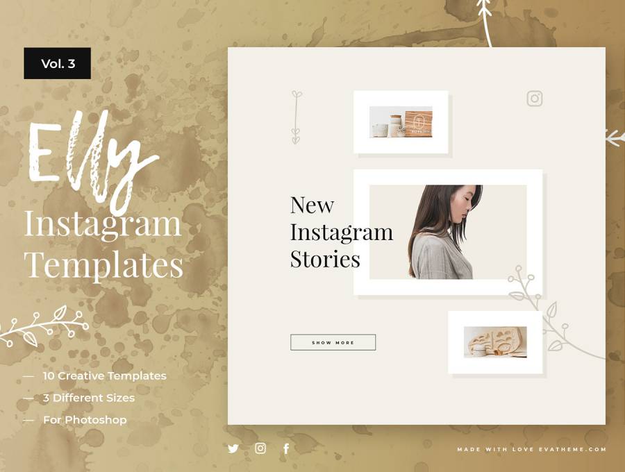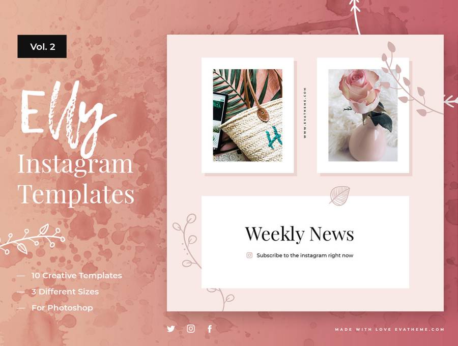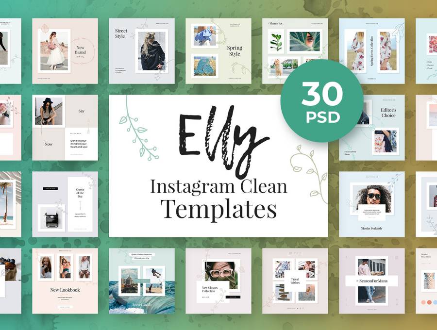 Elly Instagram模板在30个清洁Instagram模板上节省40%。,Elly Instagram清洁模板