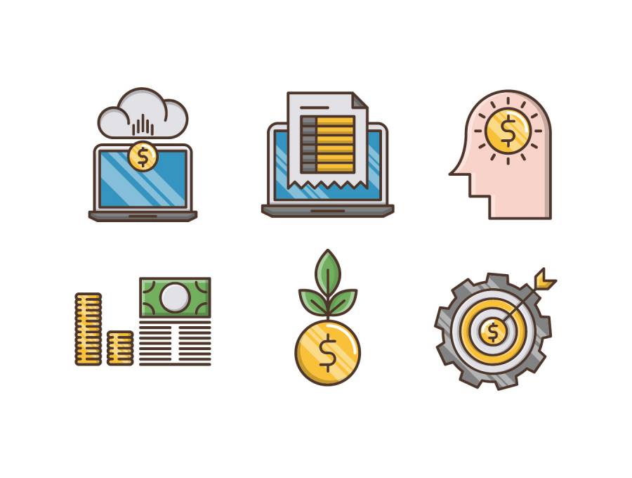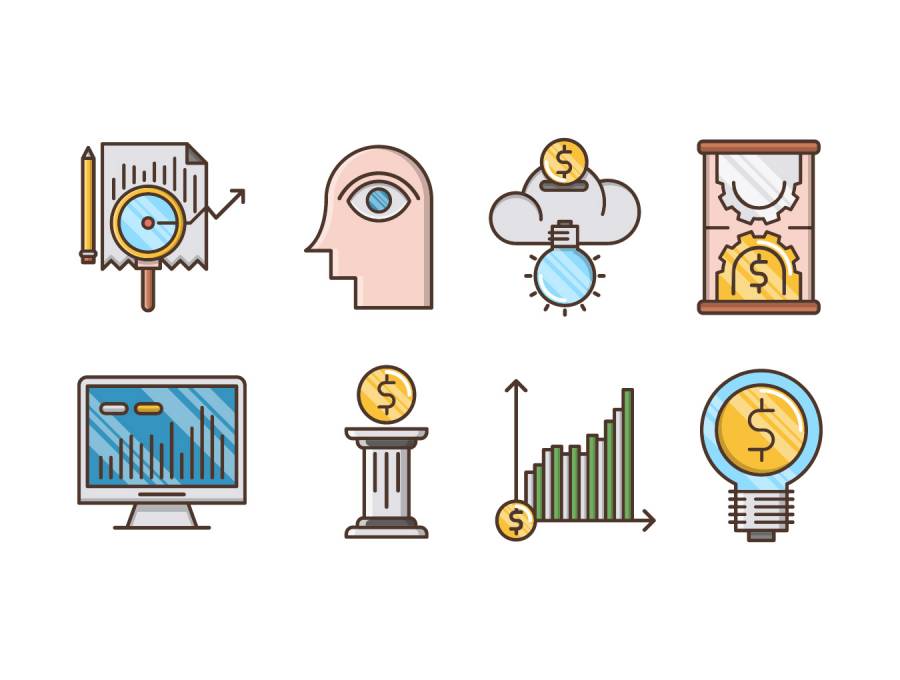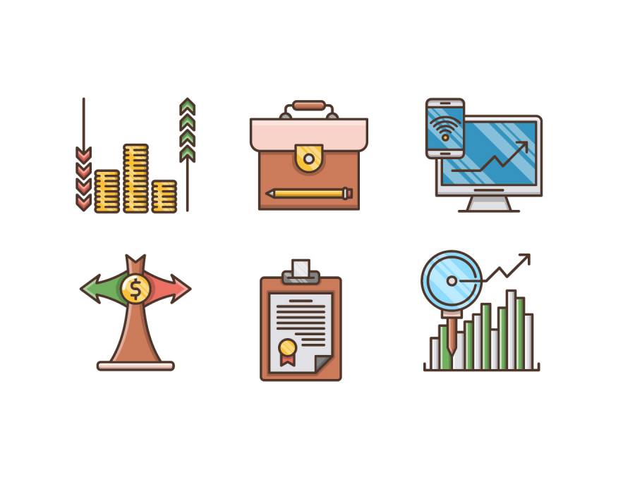 20个分析和投资图标设置为移动,Web,演示文稿和打印项目,分析和投资图标