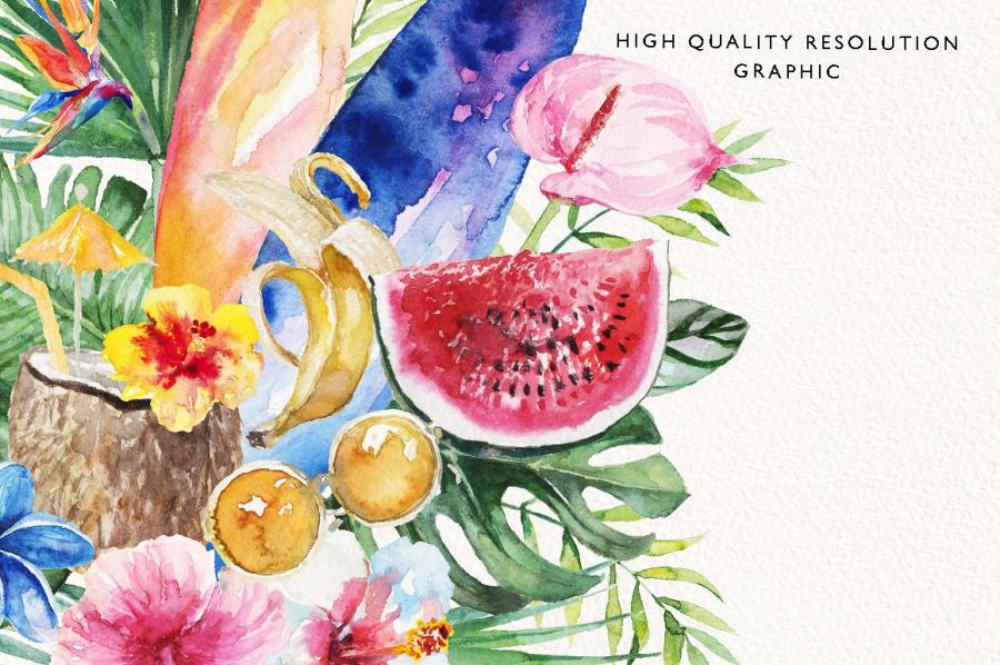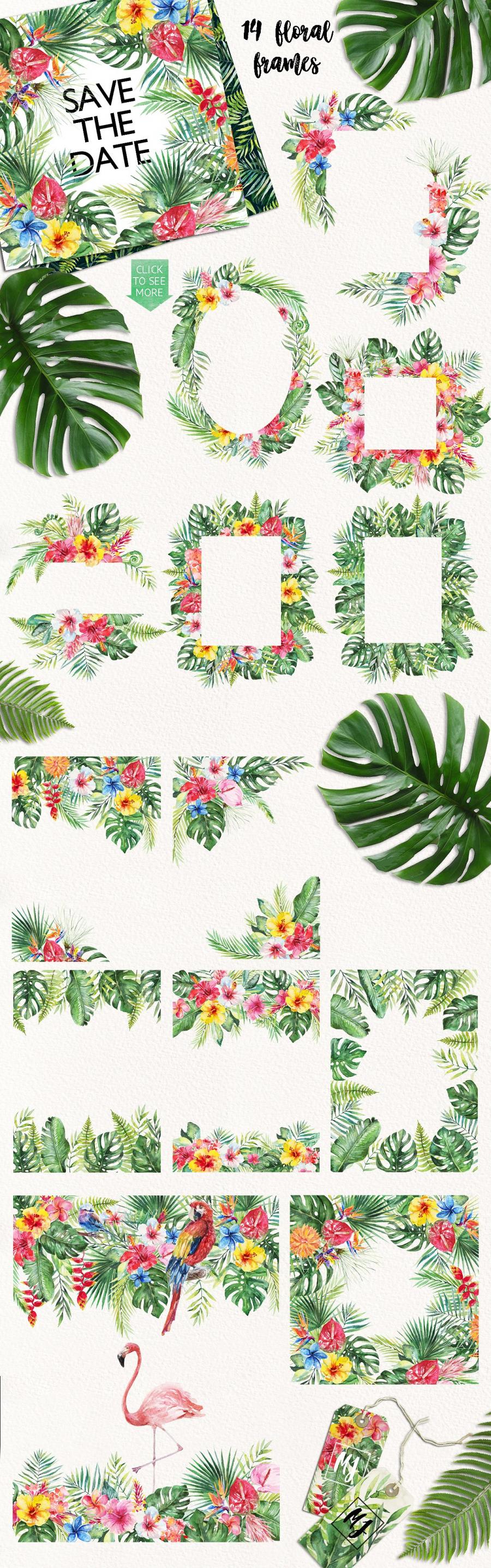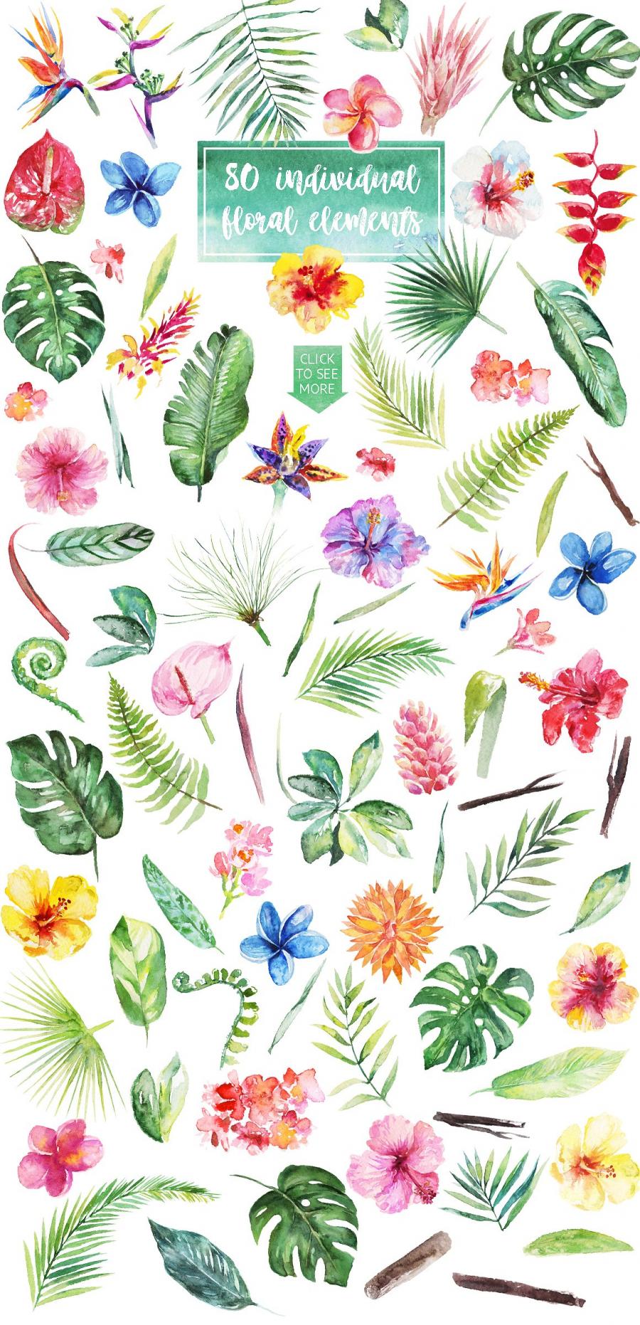 巨大的水彩风格热带雨林设计素材合集打包下载PNG格式免抠图
