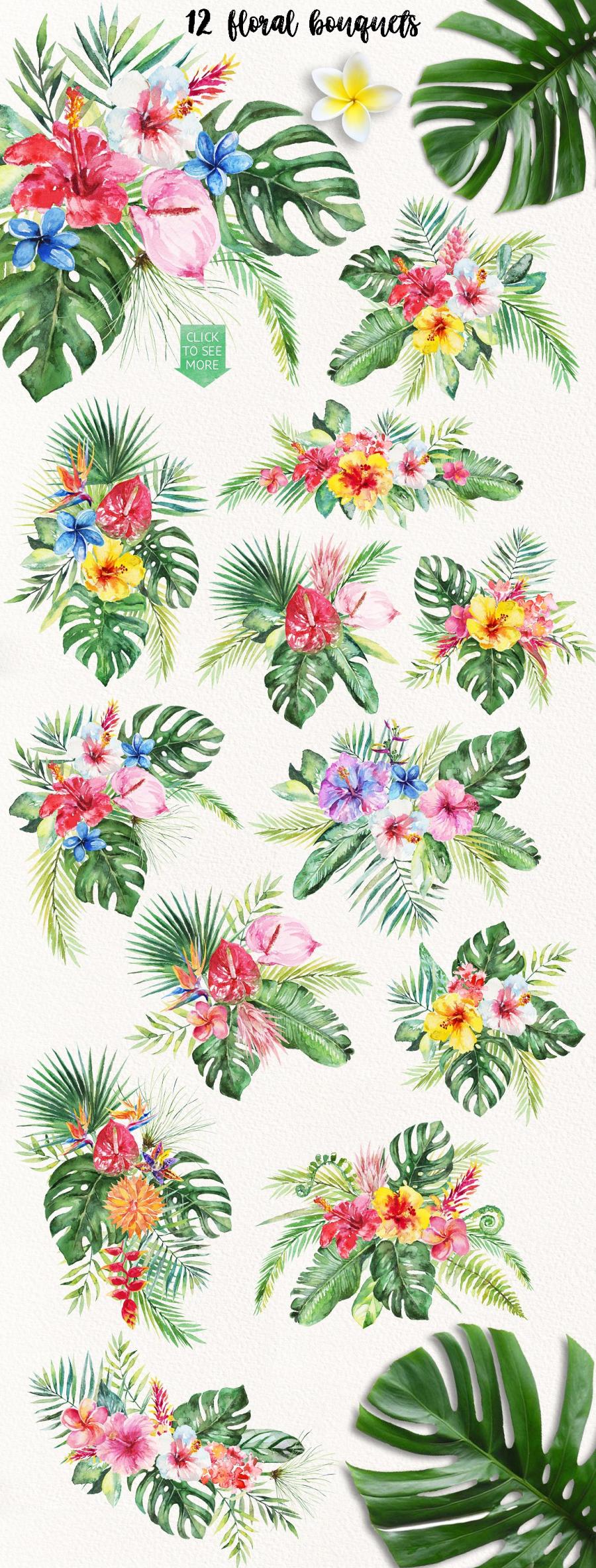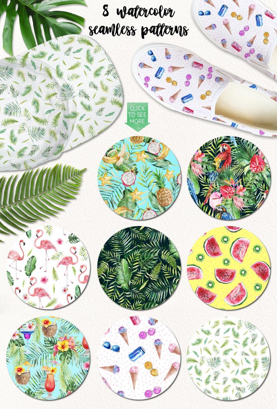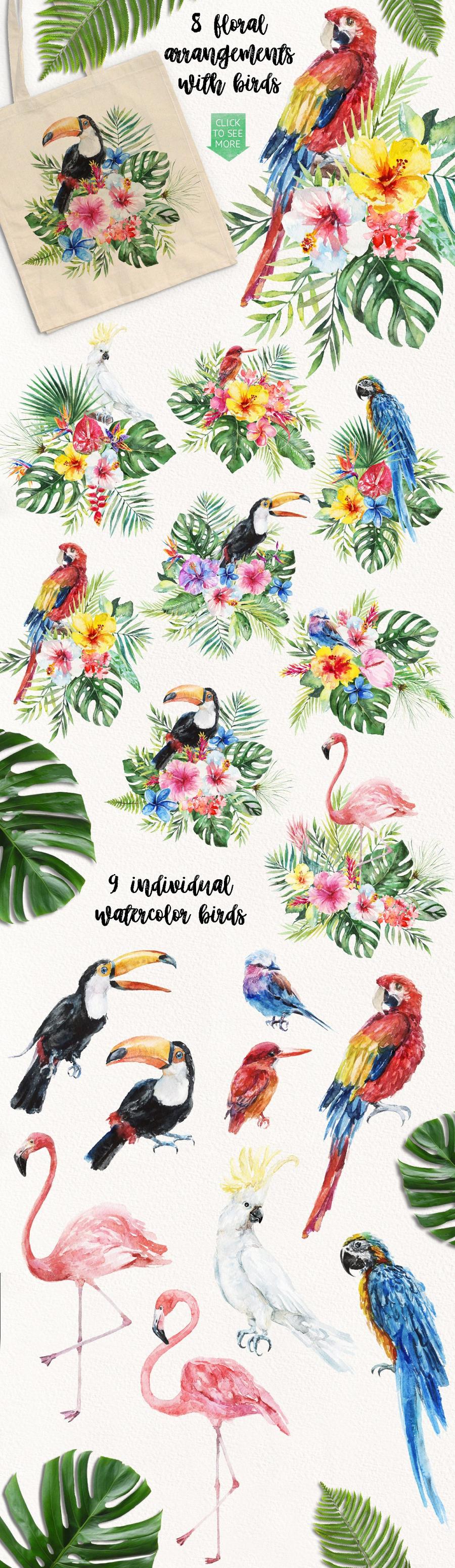 巨大的水彩风格热带雨林设计素材合集打包下载PNG格式免抠图