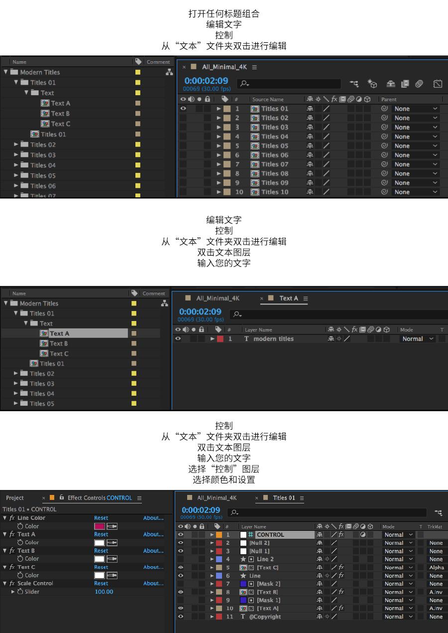 299+标题包装字幕条文字动画工程可改颜色时长AE模板