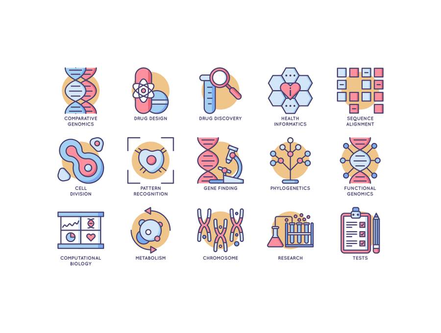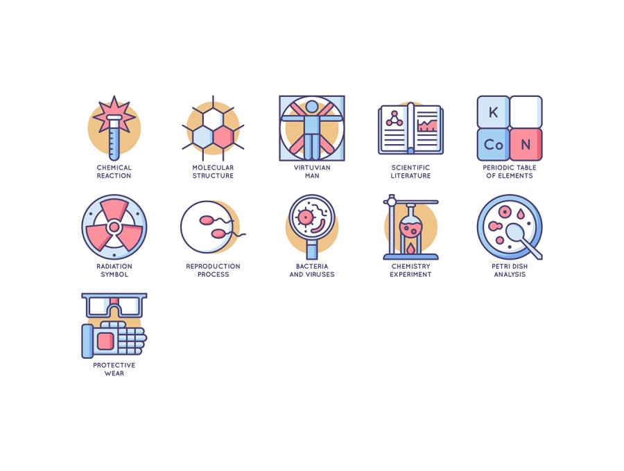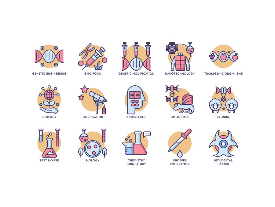 基于61个矢量的扁平圆形图标的集合,用于生物工程,克隆,生物技术,纳米技术,基因工程,生物信息学,基因组学等。图标以5种不同的文件格式提供; AI,PSD,SVG,EPS和PNG。单击完整预览按钮以查看完整集。