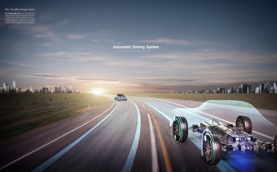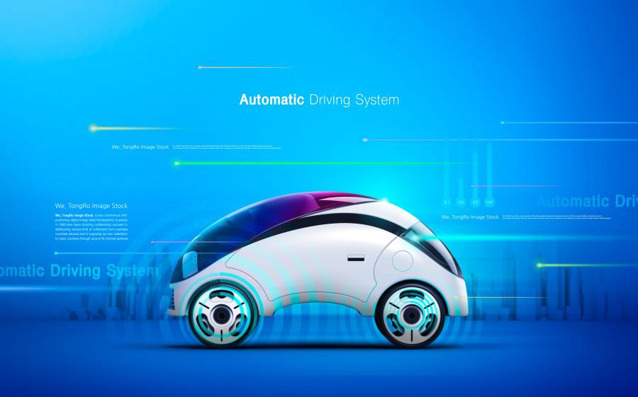 19款人工智能汽车自动驾驶泊车技术全息影像科技概念海报PSD设计素材