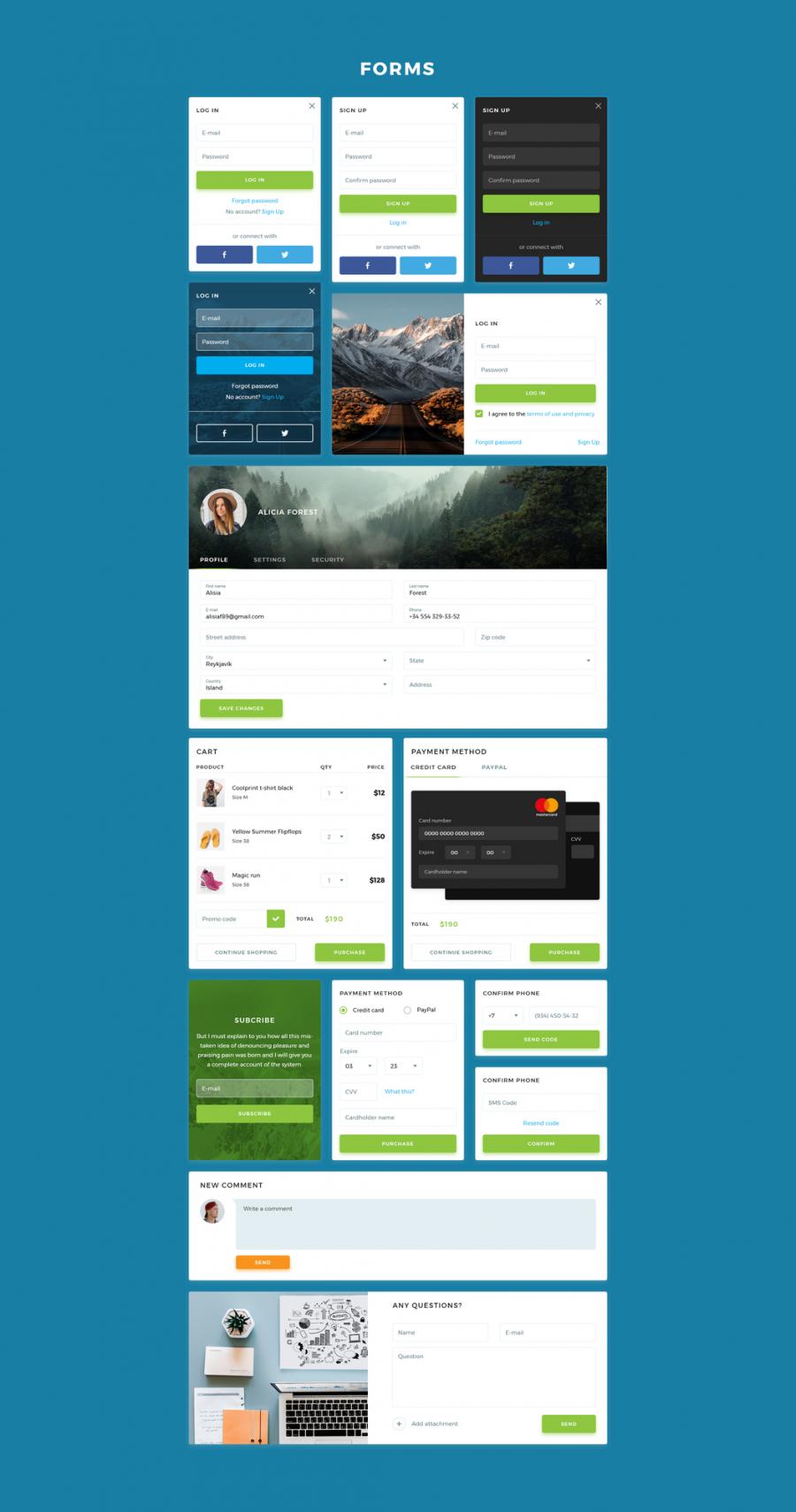 180多个组件和1000多个UI元素网页模板UI工具包(含Photoshop和Adobe XD源文件)