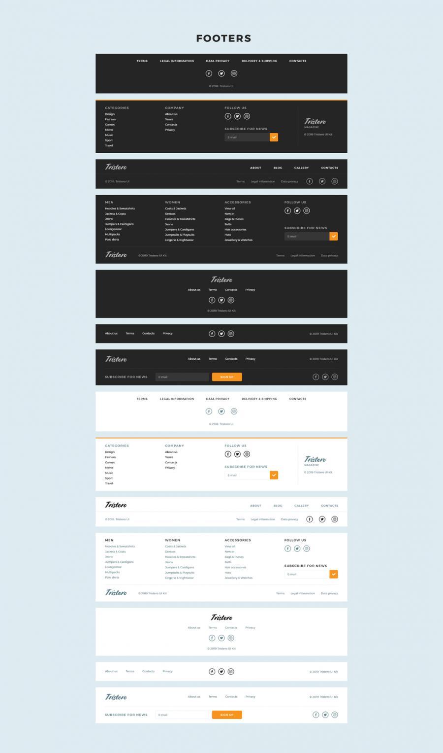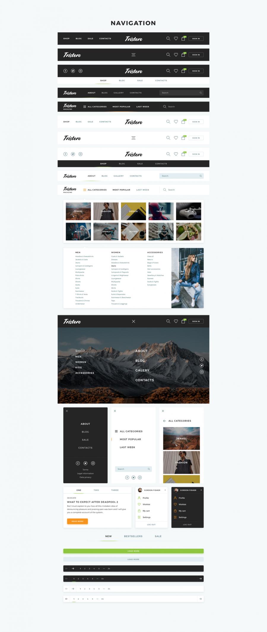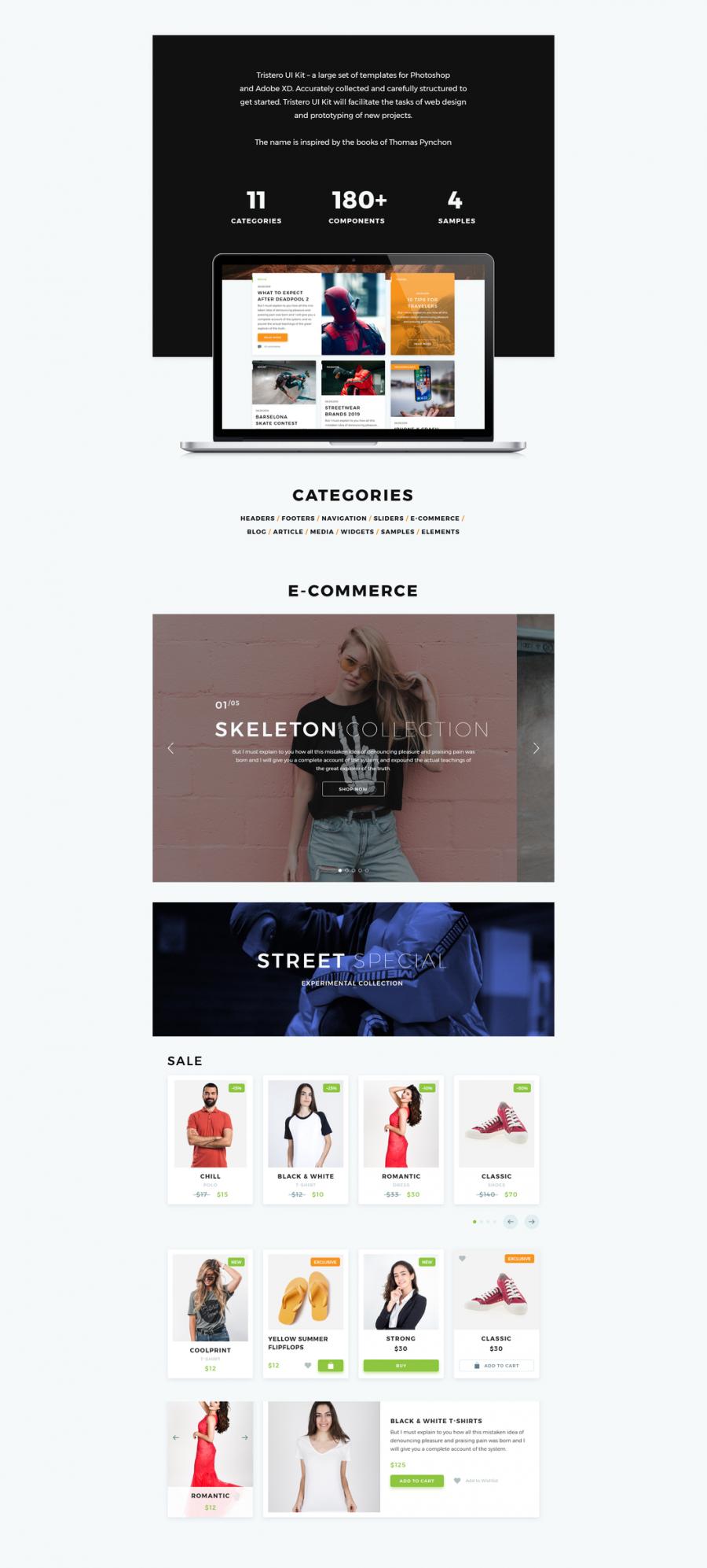 Tristero UI Kit - 适用于Photoshop和Adobe XD的大量模板。准确收集并精心构建,以便开始使用。 Tristero UI Kit将促进网页设计和新项目原型设计的任务。这个名字的灵感来自Thomas Pynchon的书籍。