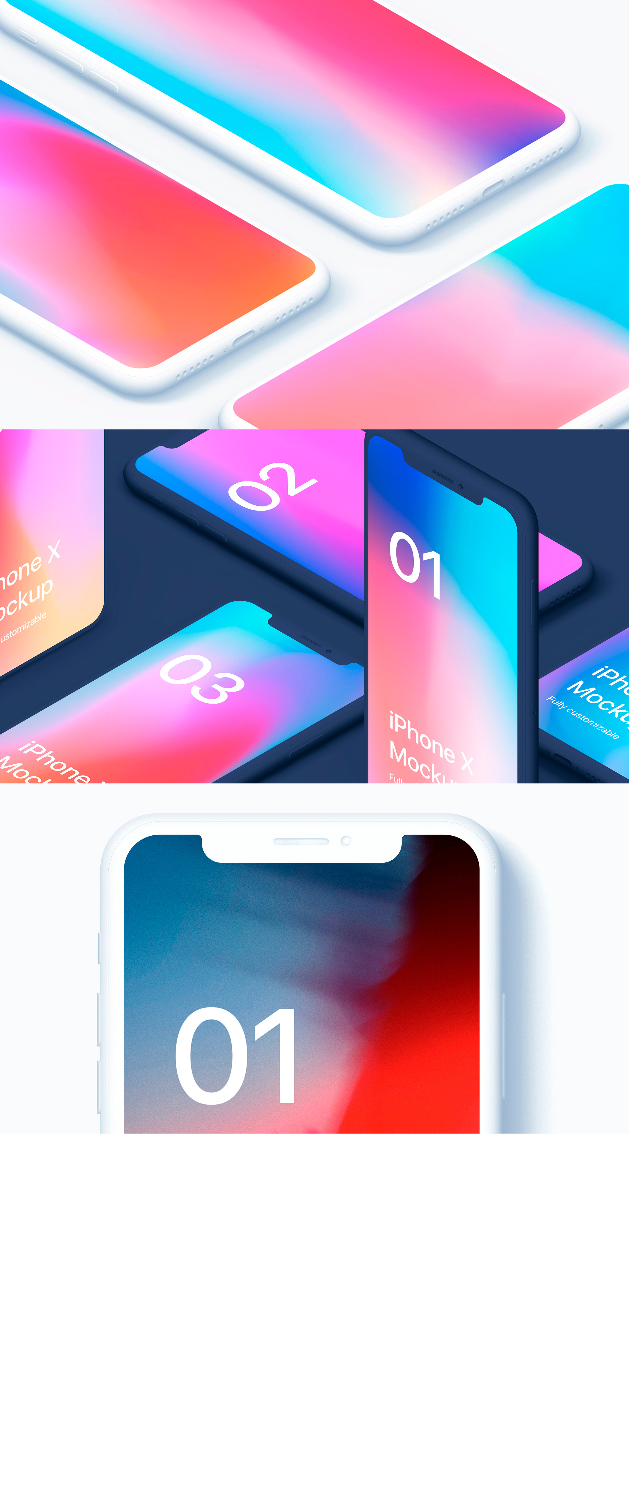 - 每个PSD都是完全可定制的(iPhone X的颜色,背景等)。