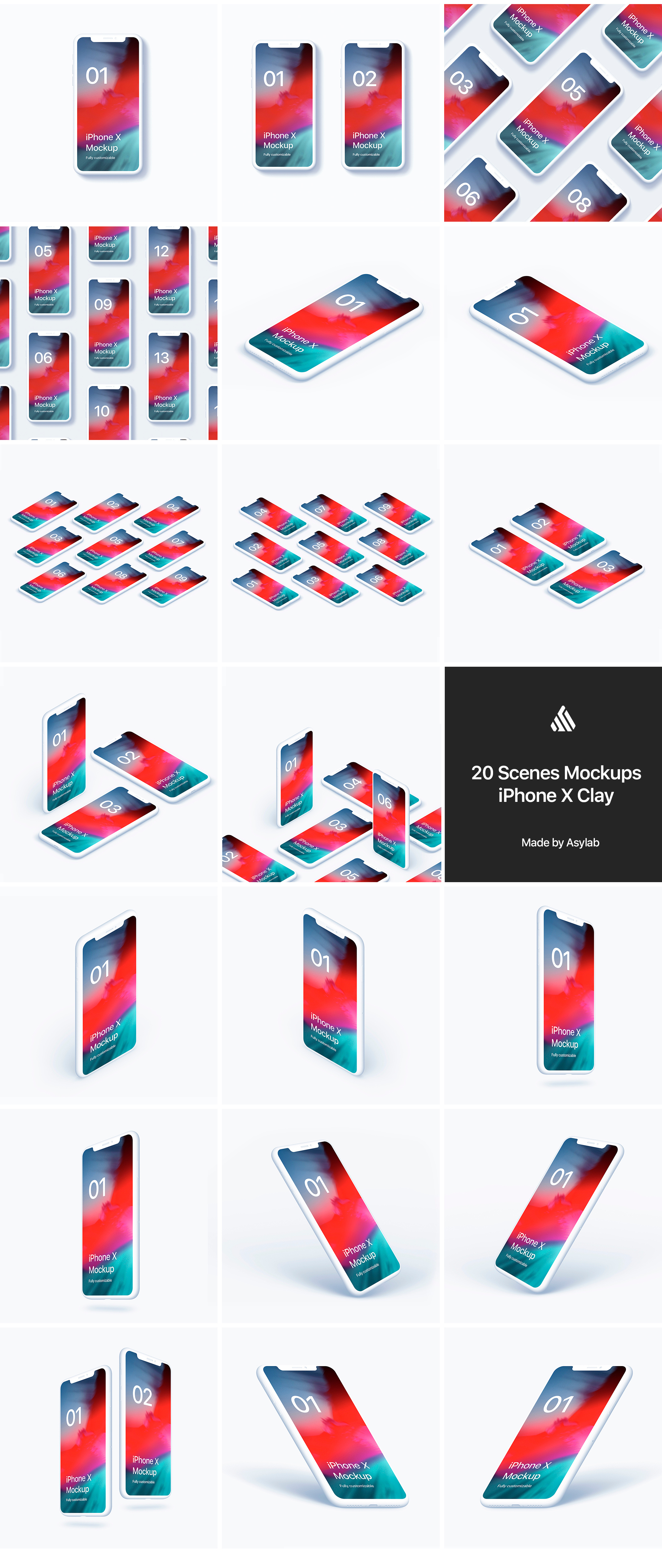 完全可定制的iPhone X Clay,iPhone X Clay 20场景样机