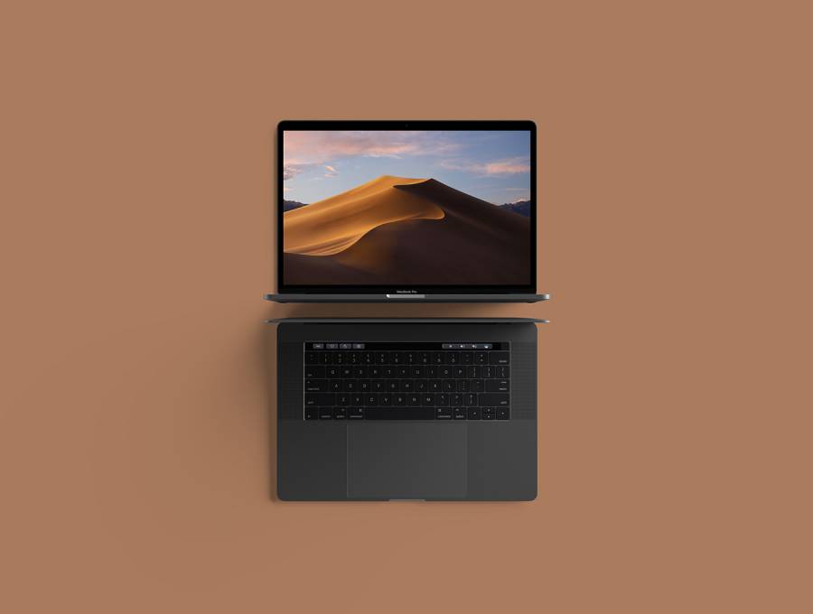 Photoshop顶视图MacBook Pro样机,现代MacBook Pro