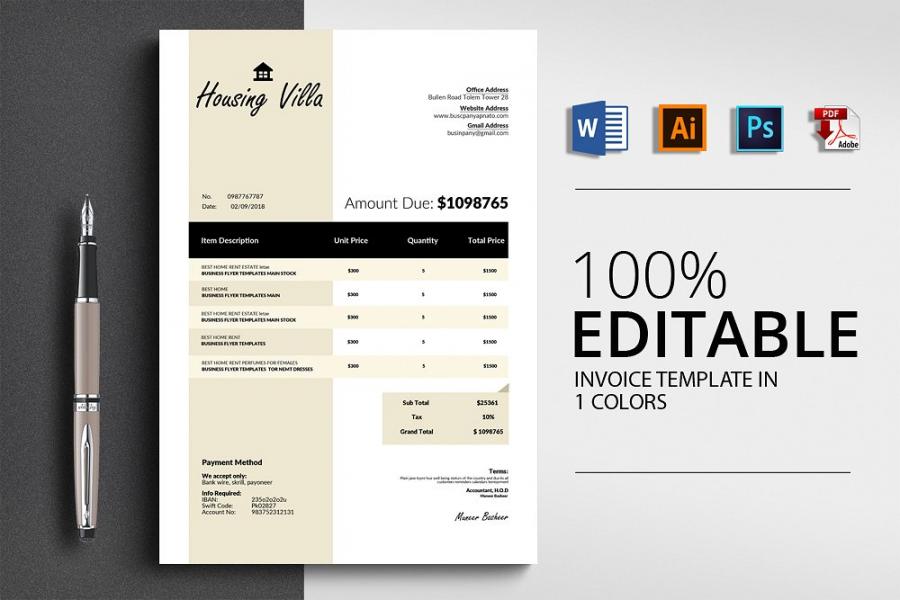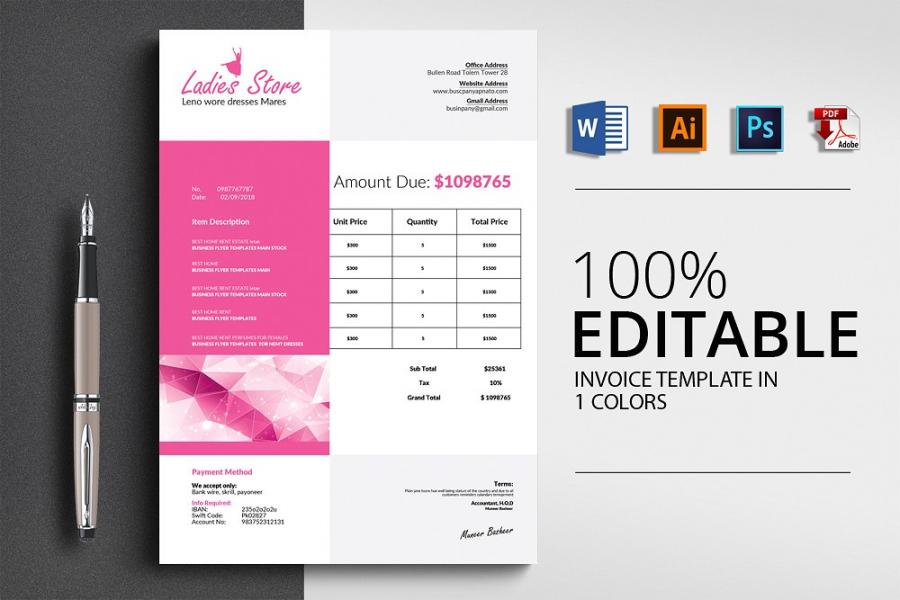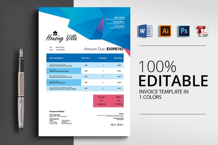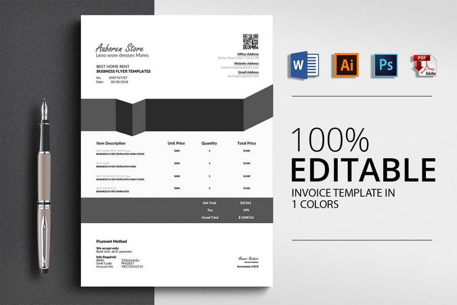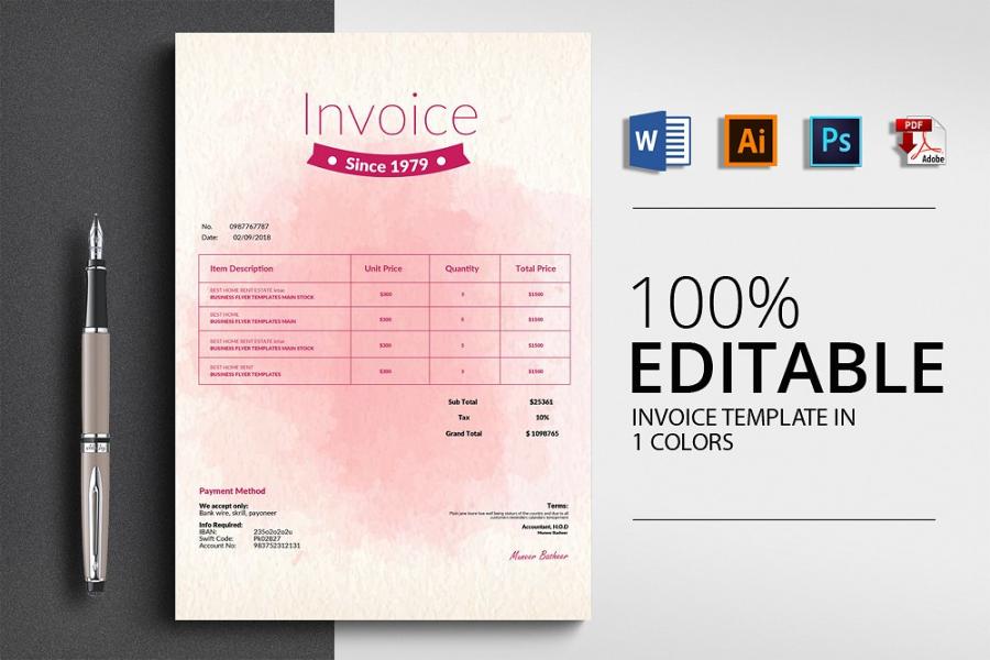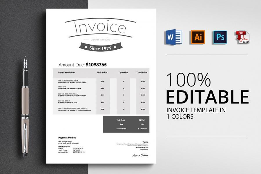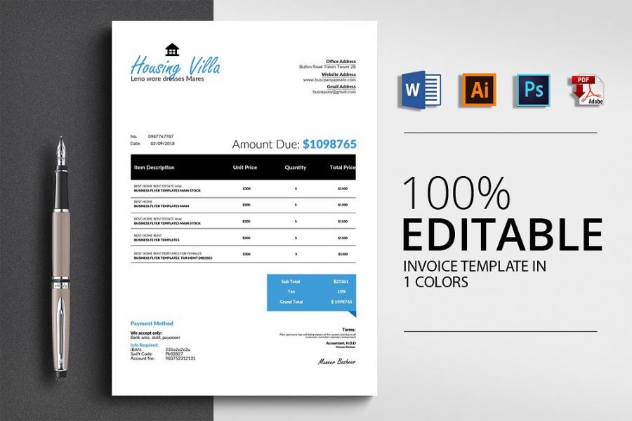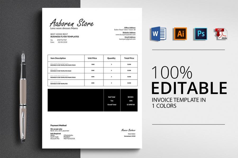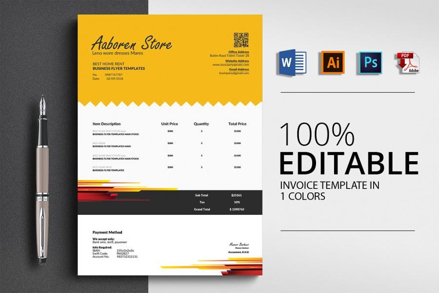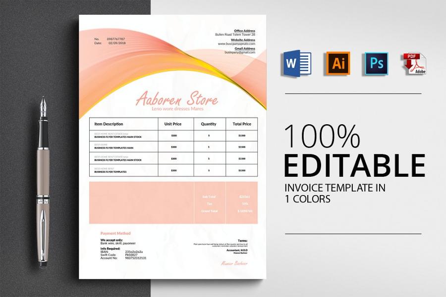 10款英文发票收据A4尺寸模板素材 (含Word,ai,pdf,psd格式)