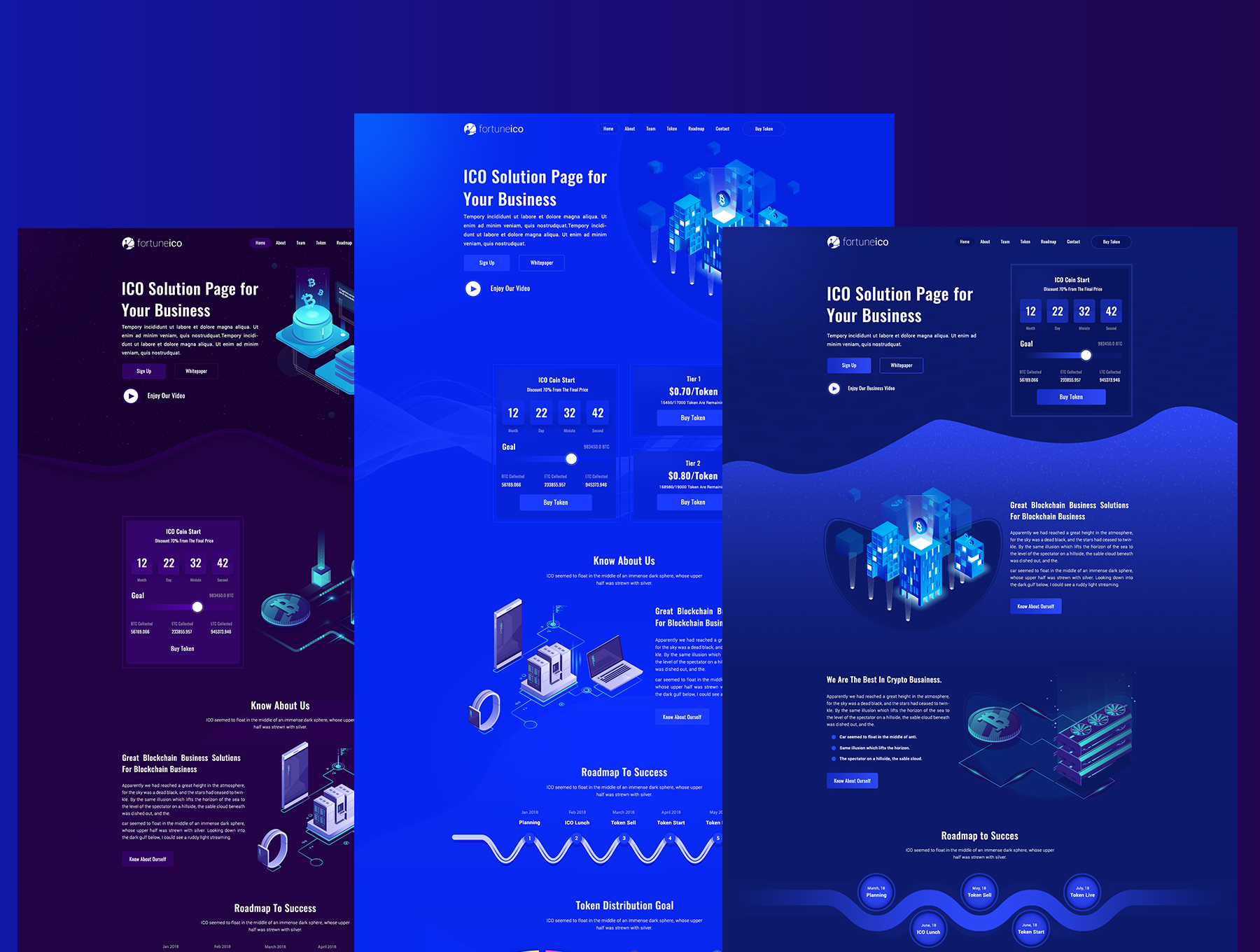Fortune是一个使用Photoshop设计的ICO登陆页面。它是一个完全可定制的ICO模板,可用于任何加密货币或ICO网站。可以轻松修改它以包含启动ICO活动的所有相关信息。这是代码的100%准备文件。