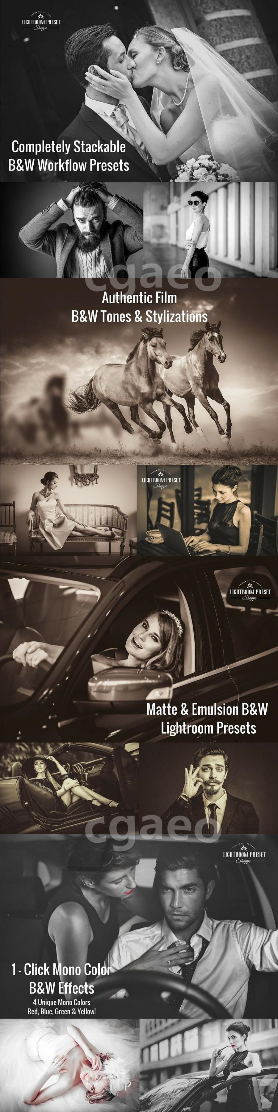 147款永恒经典复古黑白效果影视传媒工作室摄影师后期LR调色预设+视频操作教程 B& W Lightroom Presets Bundle