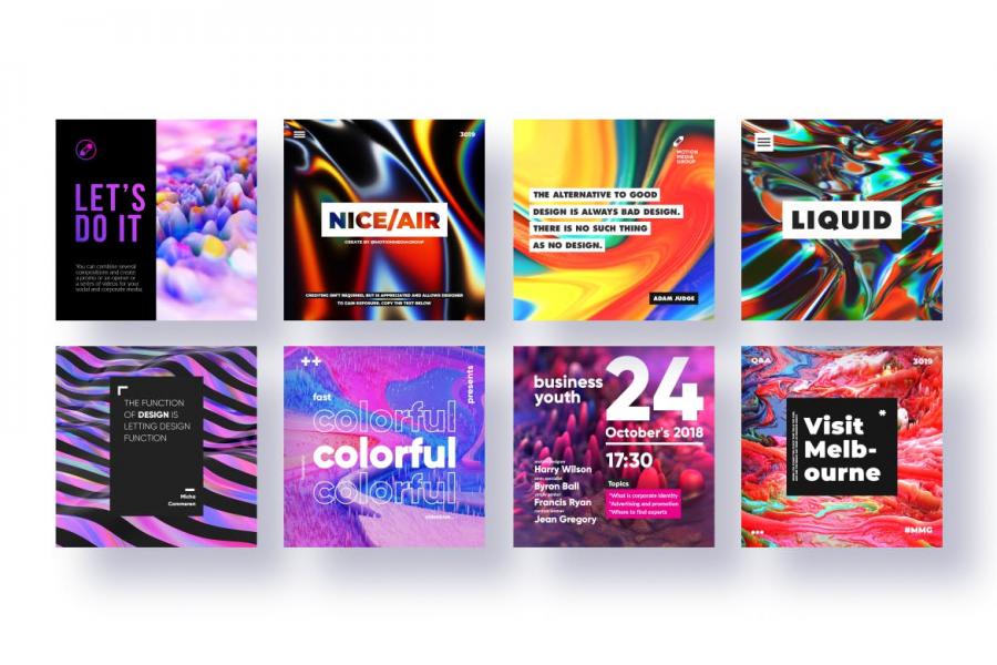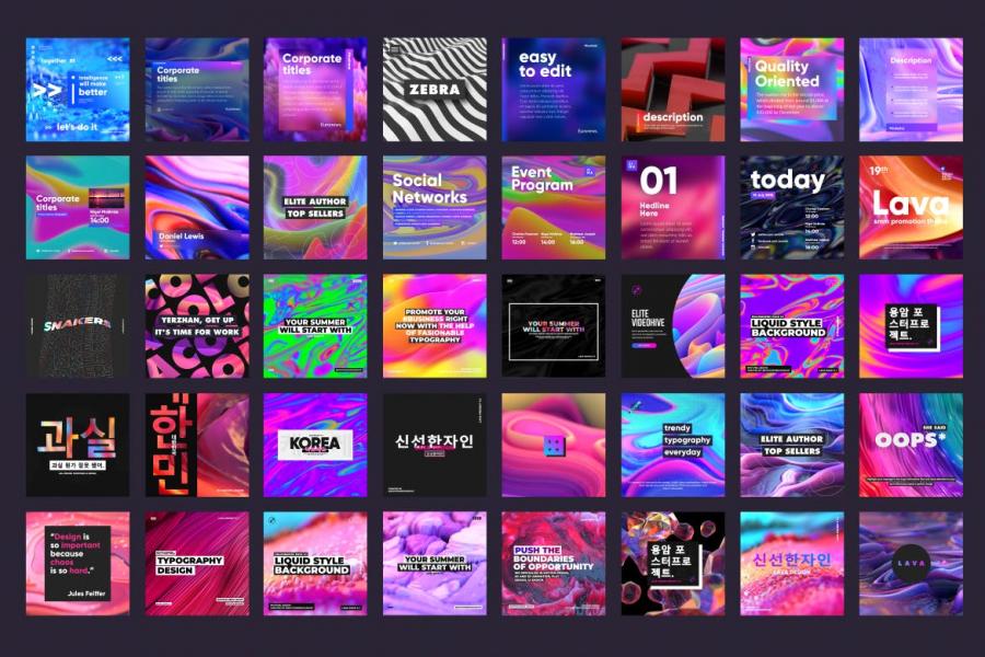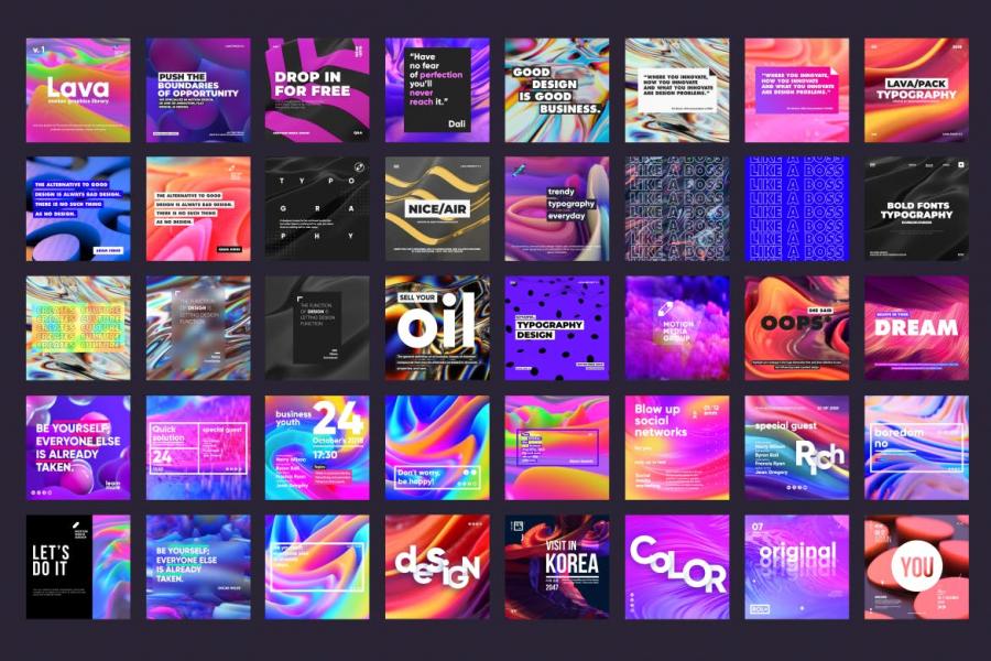 90款熔岩炫彩背景社交媒体素材包PSD源文件 Lava Posters