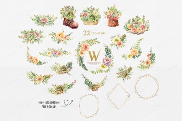 80款手绘水彩多肉植物盆栽园艺花园种植栽培靴子花PNG素材设计源