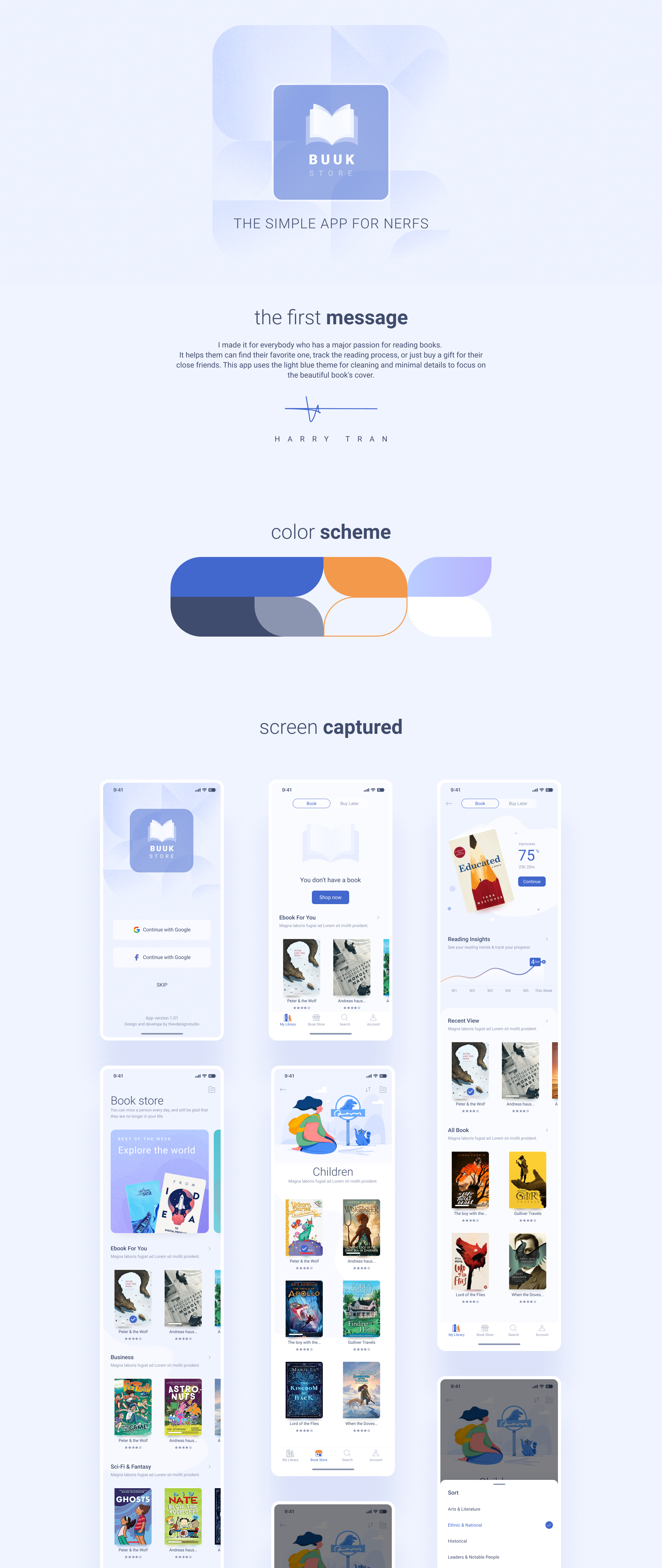 我为每个对阅读书籍的主要热情的人做了它。它有助于他们可以找到他们最喜欢的,跟踪阅读过程,或者只是为他们亲密的朋友买礼物。此应用程序使用浅蓝色主题进行清洁和最小的细节,以专注于美丽的书籍的封面。