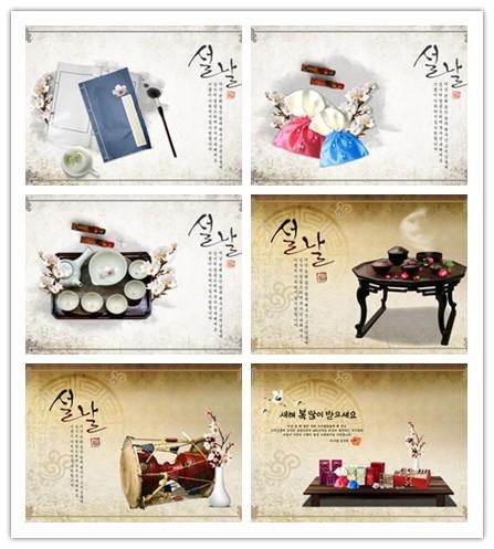 6款韩式古风静物psd分层素材