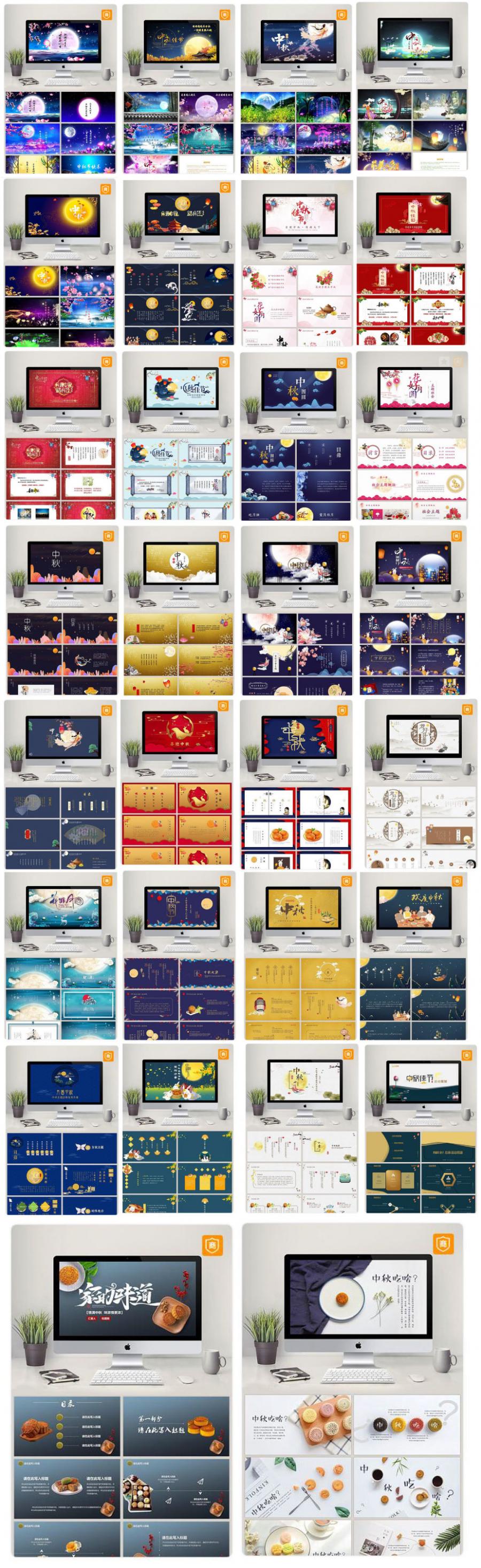 30套传统中国风文化剪纸极简中秋节晚会片头舞台背景led动态ppt模板