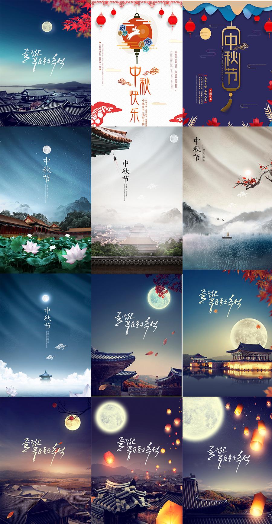 12款中秋节海报模板月饼礼品广告商场活动电商首页H5背景PSD设计素材